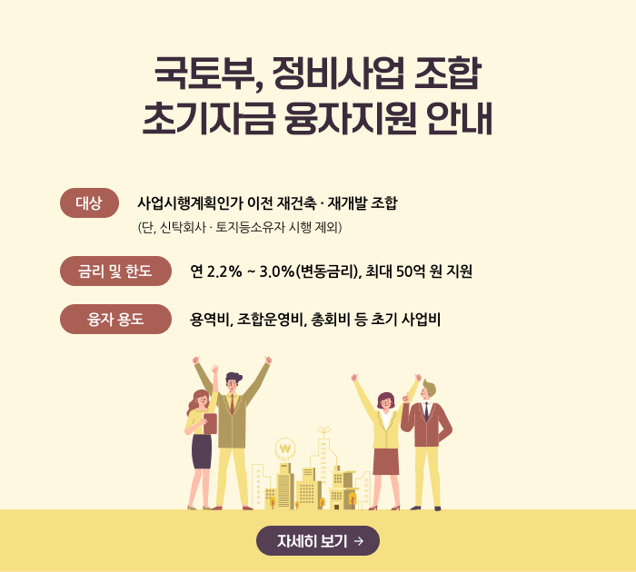 국토부, 정비사업 조합 초기자금 융자지원 안내