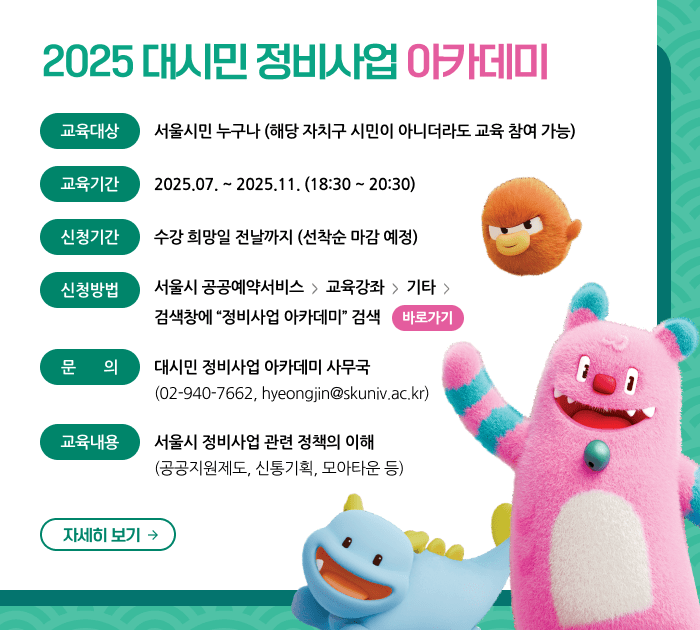 - 대상:서울시민, 정비구역 내 토지등 소유자및 임원, 전문조합 관리인등