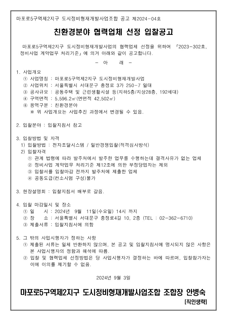 추진위원회/조합명 : 마포로5구역제2지구 도시정비형재개발사업조합