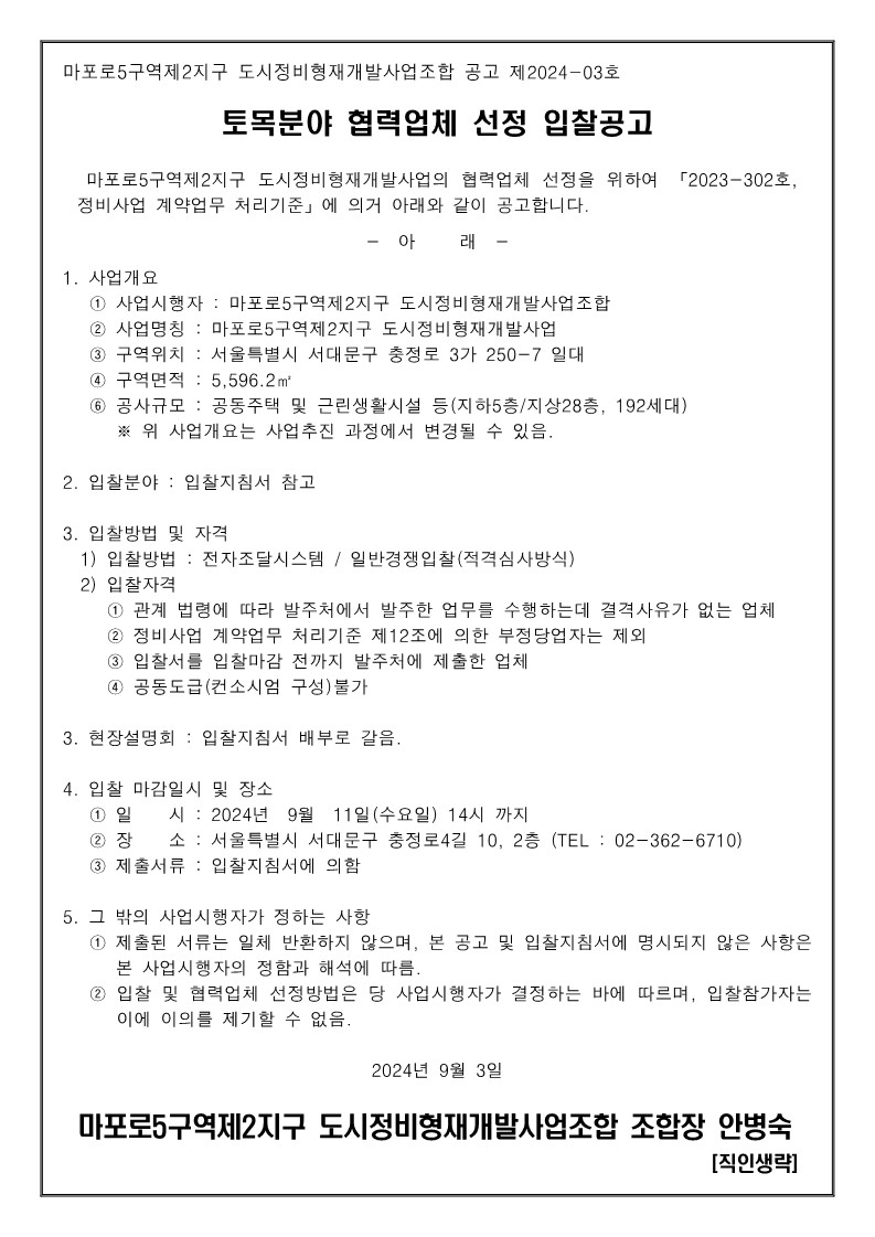 추진위원회/조합명 : 마포로5구역제2지구 도시정비형재개발사업조합