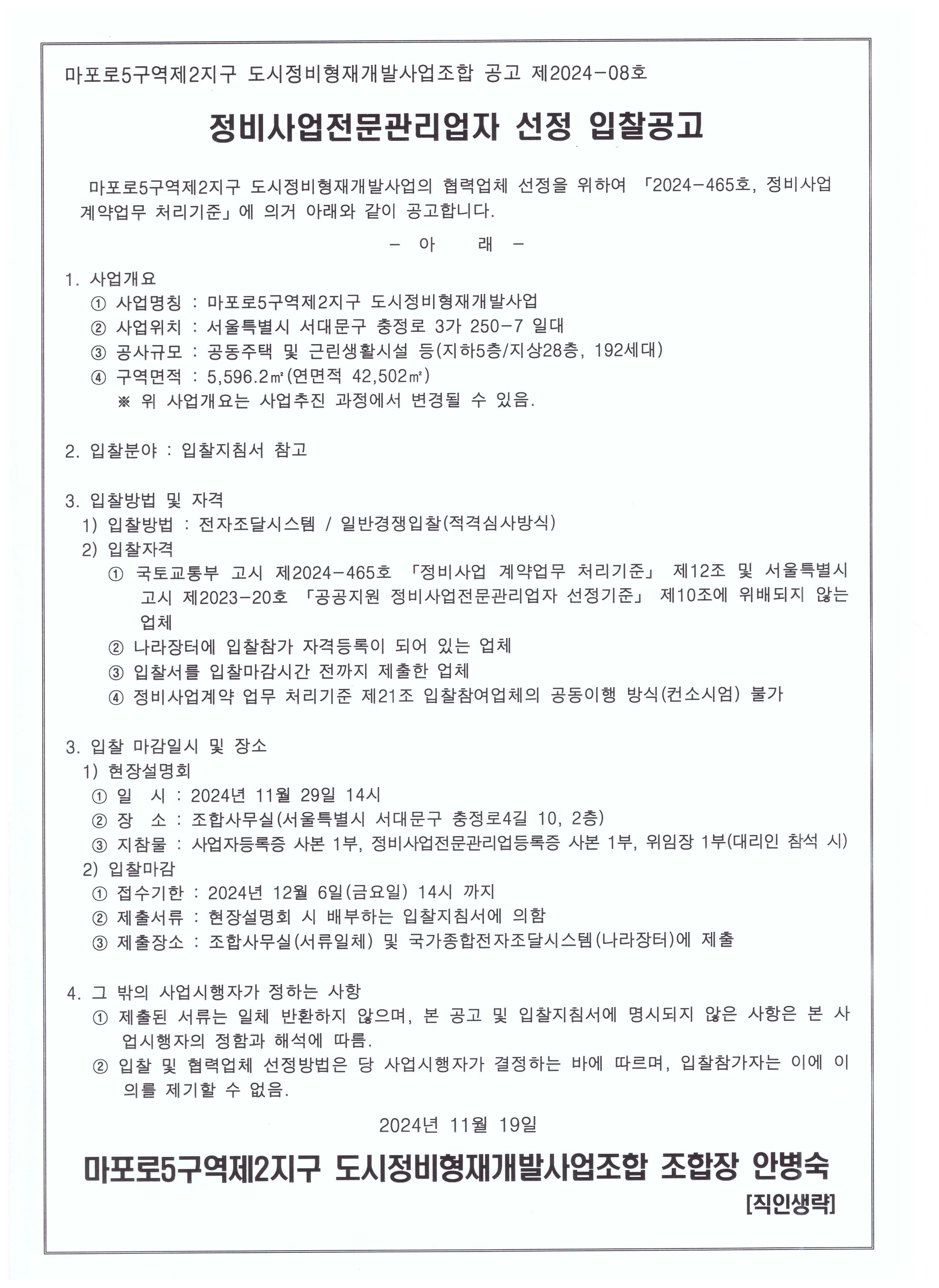 추진위원회/조합명 : 마포로5구역제2지구 도시정비형재개발사업조합