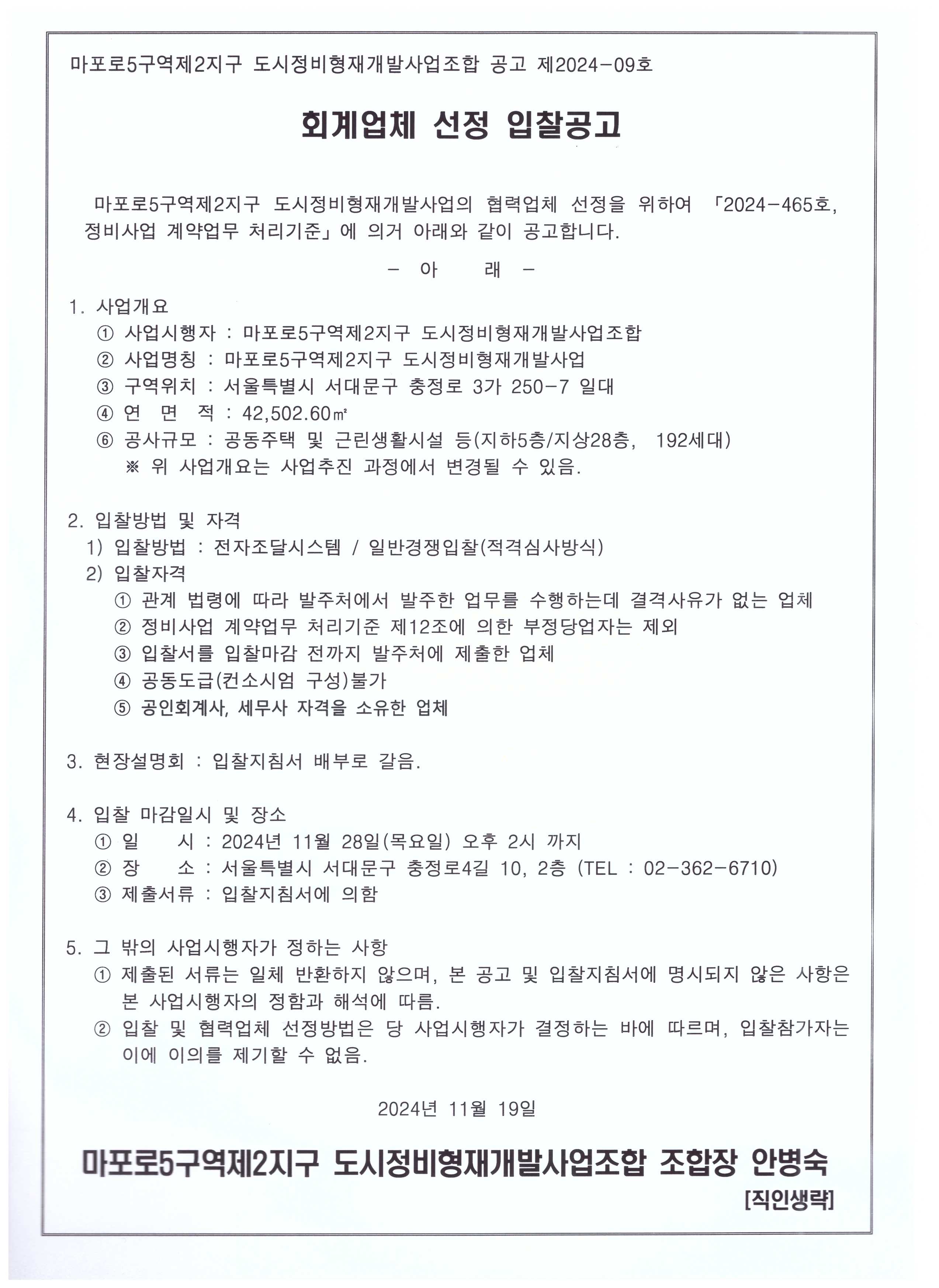 추진위원회/조합명 : 마포로5구역제2지구 도시정비형재개발사업조합