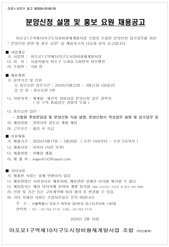 추진위원회/조합명 : 마포로1구역 제10지구 도시정비형 재개발사업 조합