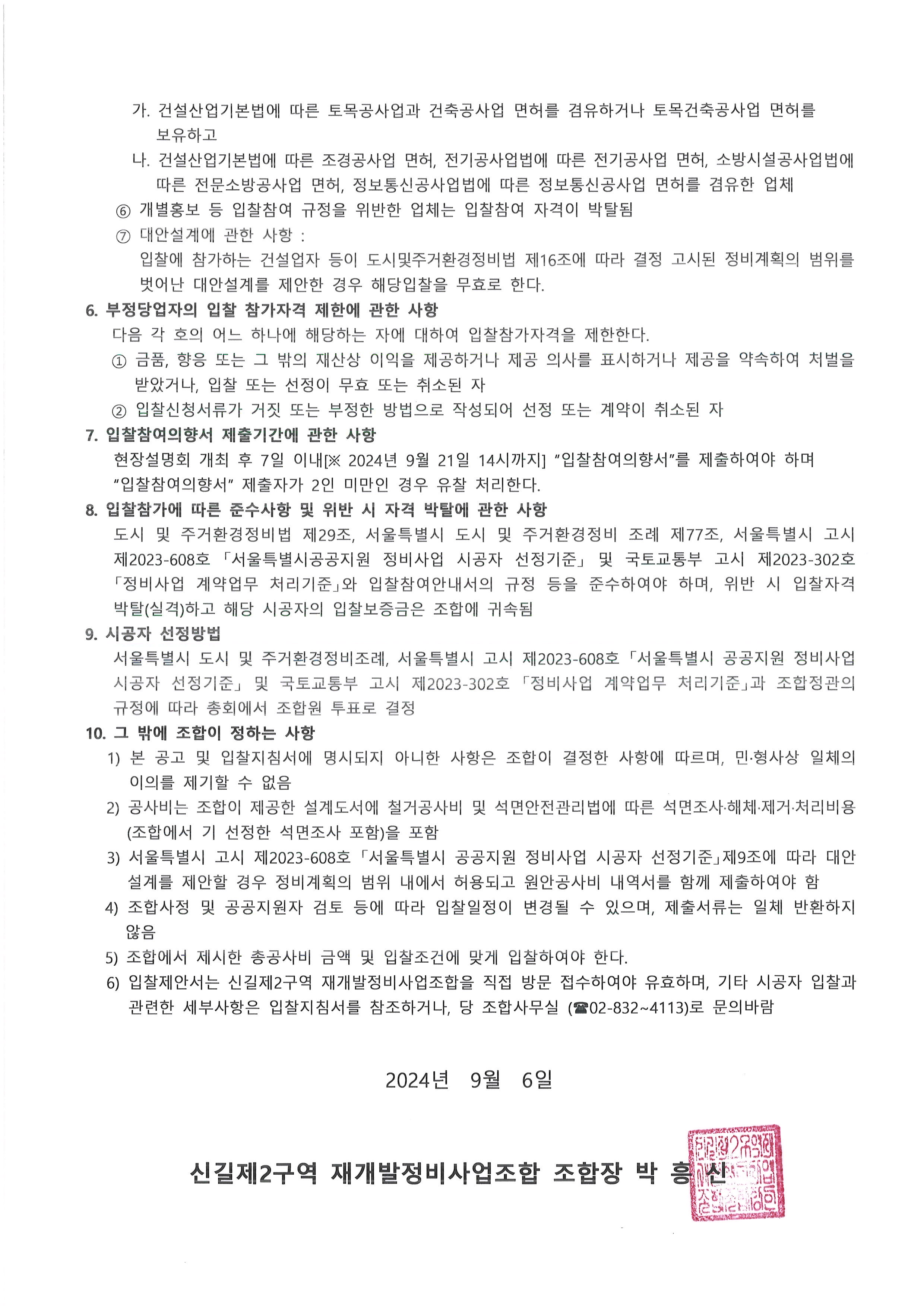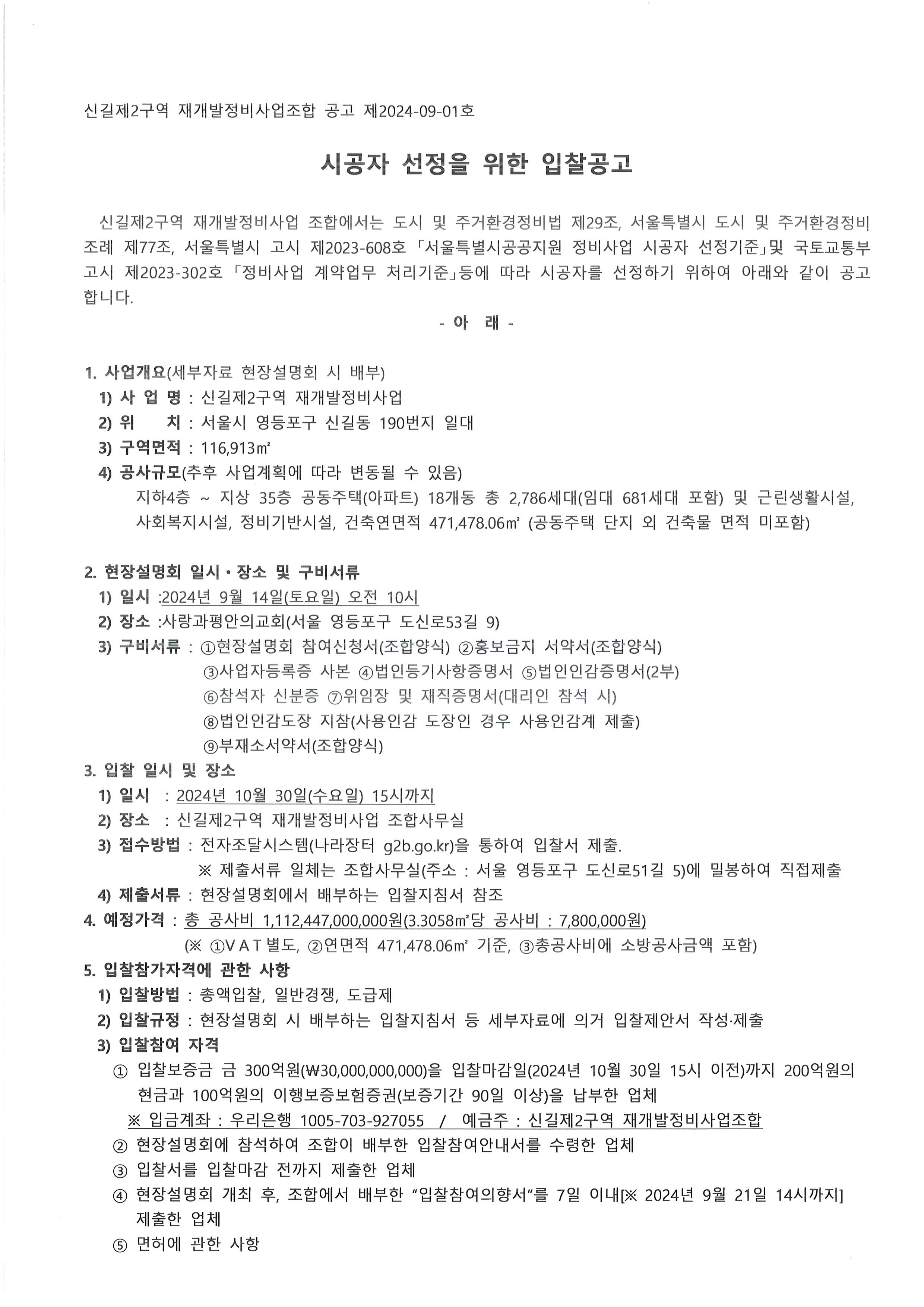 시공자 선정을 위한 입찰공고