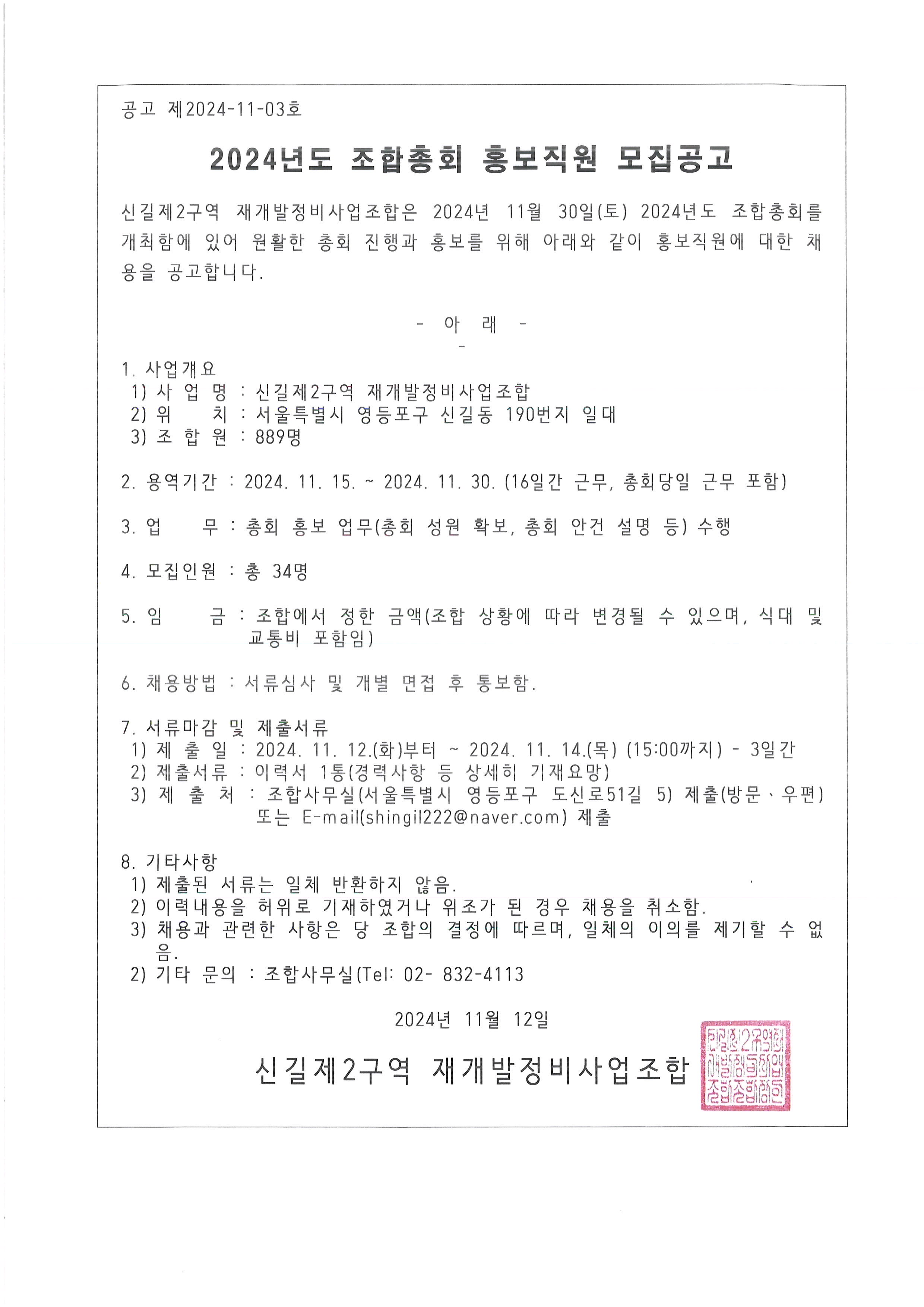 추진위원회/조합명 : 신길제2구역 주택재개발정비사업조합