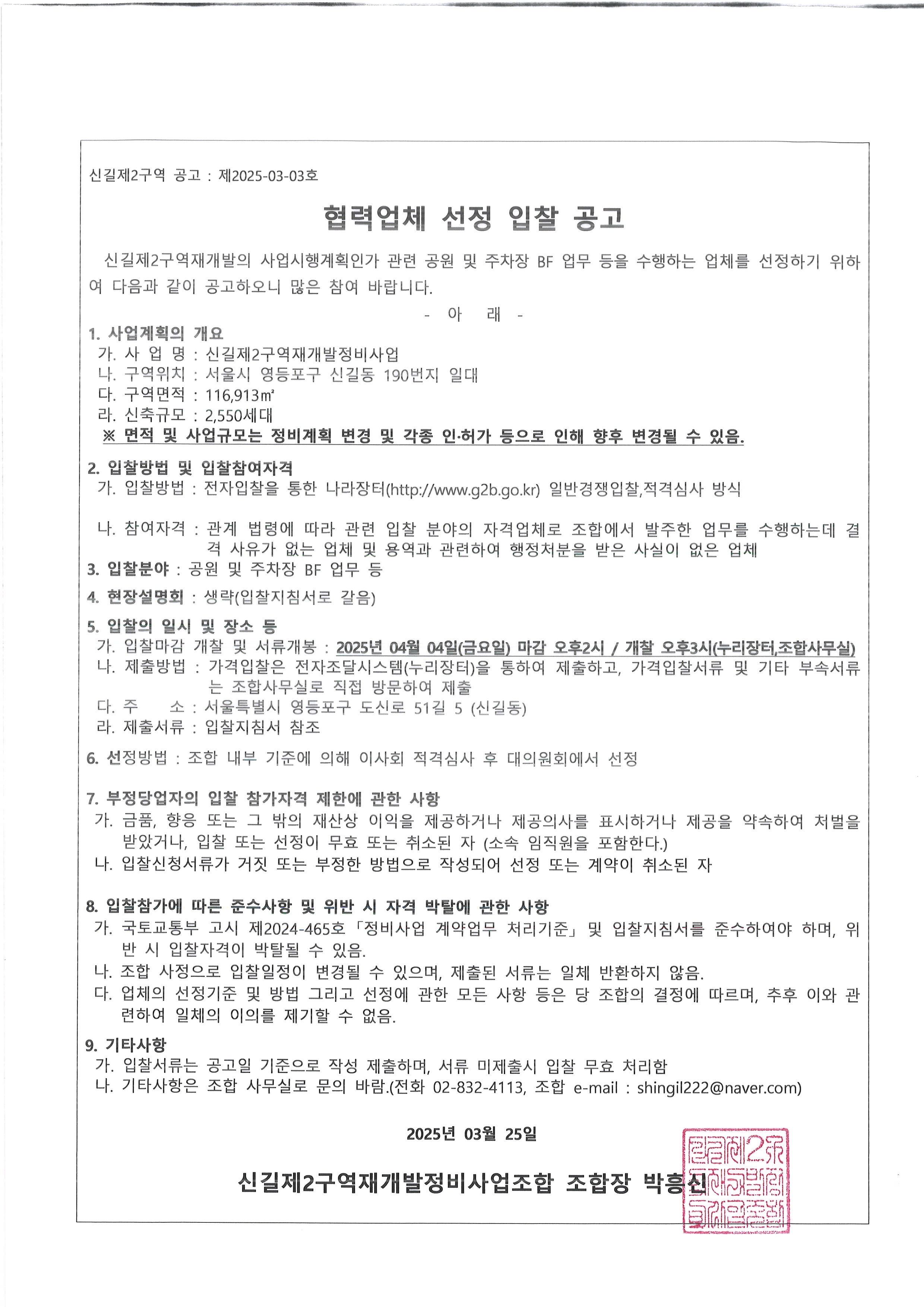 추진위원회/조합명 : 신길제2구역 주택재개발정비사업조합