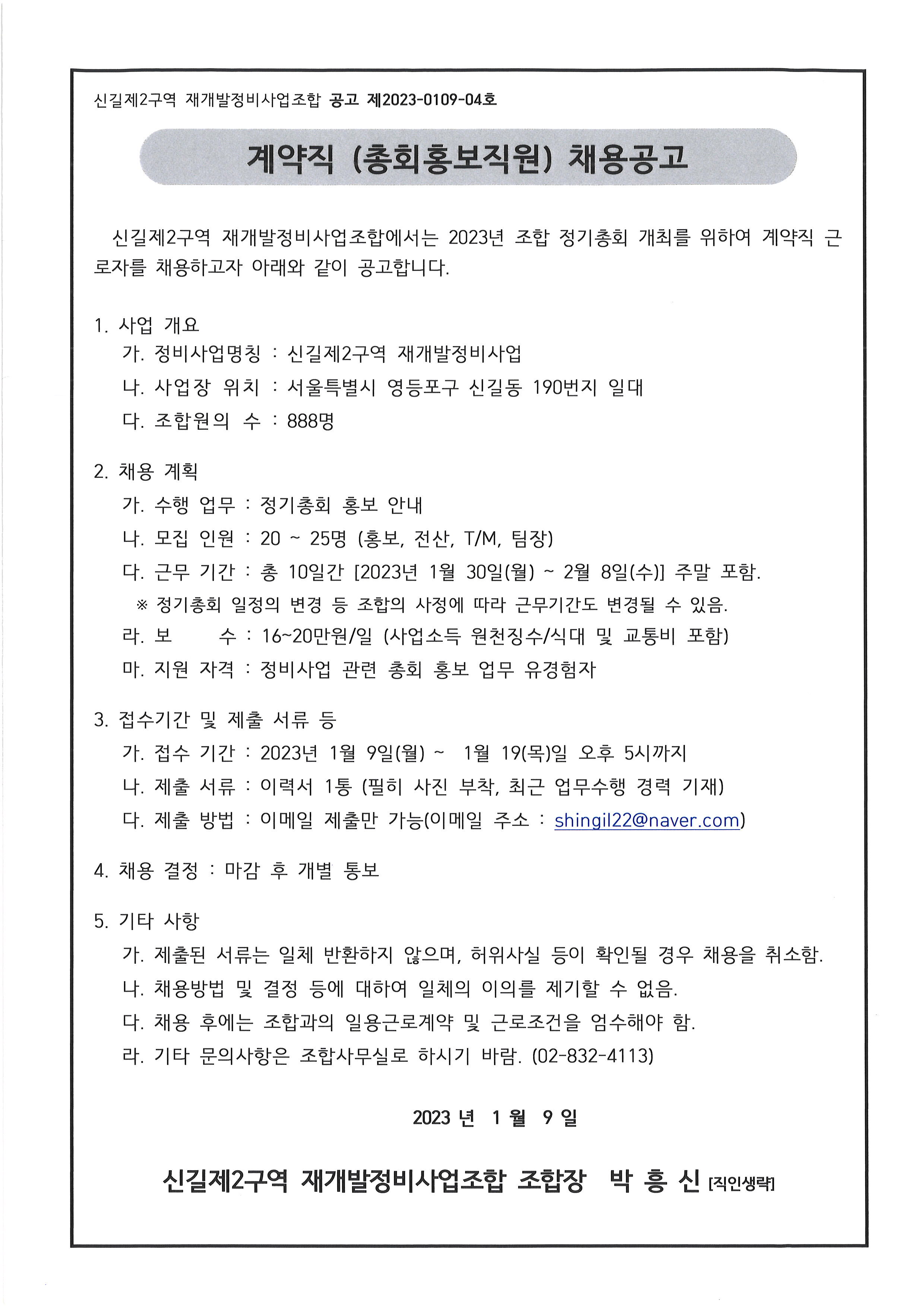 계약직(총회홍보직원) 채용공고