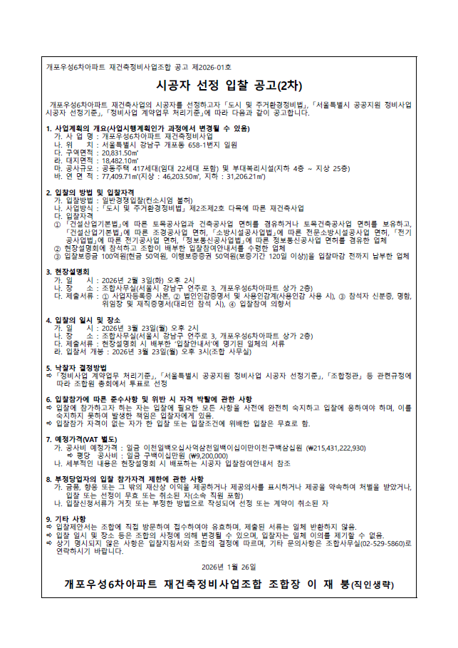 추진위원회/조합명 : 개포우성6차아파트 재건축정비사업조합