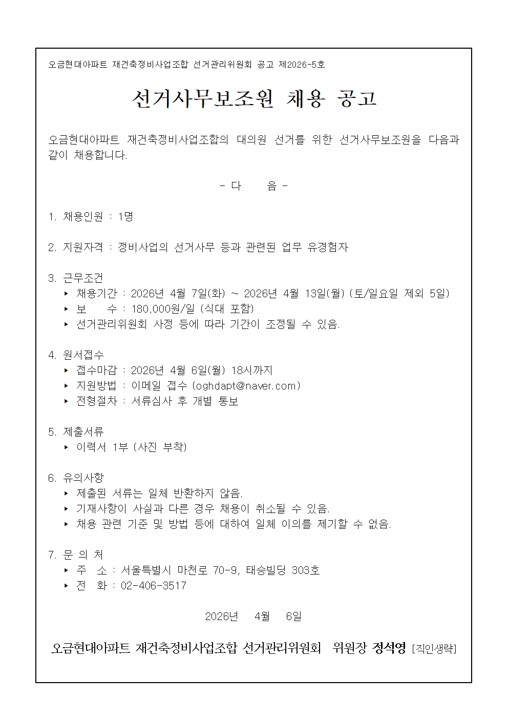 ※ 기타 자세한 사항은 별첨을 참조하시기 바랍니다.