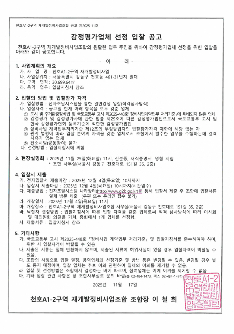 추진위원회/조합명 : 천호동 461-31번지 일대 재개발정비사업(천호 A1-2)