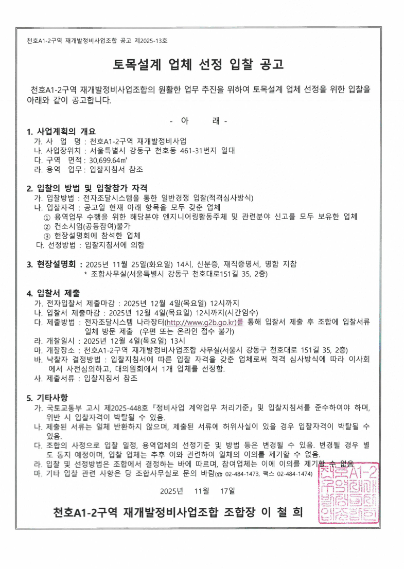 추진위원회/조합명 : 천호동 461-31번지 일대 재개발정비사업(천호 A1-2)