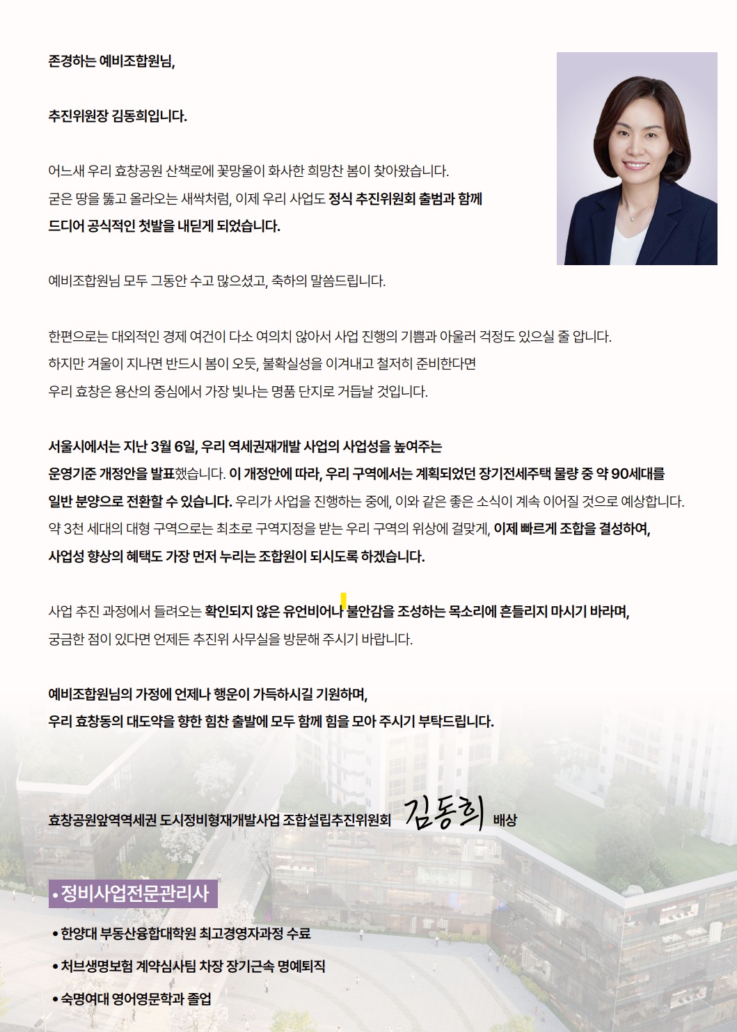 정비사업 추진과정을 유리알처럼 투명하게 공개
