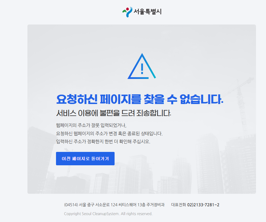 계속되는 페이지를 찾을수없다는 오류메세지로
