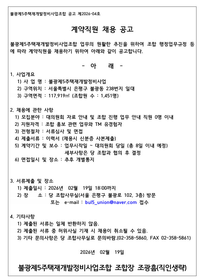 추진위원회/조합명 : 불광제5 주택재개발정비사업 조합