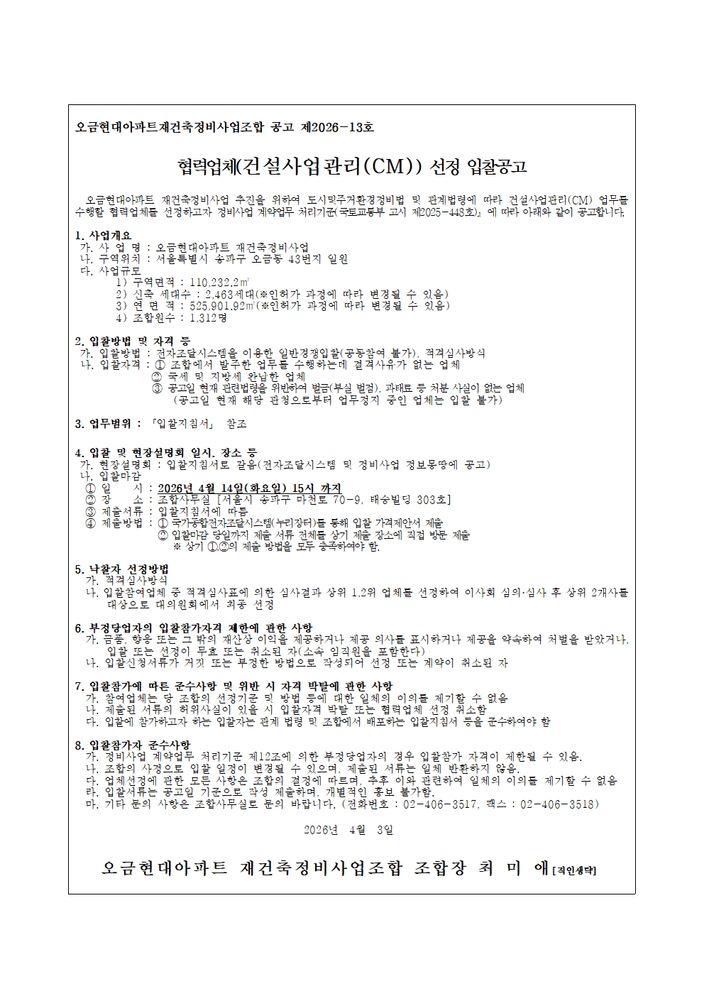 추진위원회/조합명 : 오금현대아파트 주택재건축정비사업구역