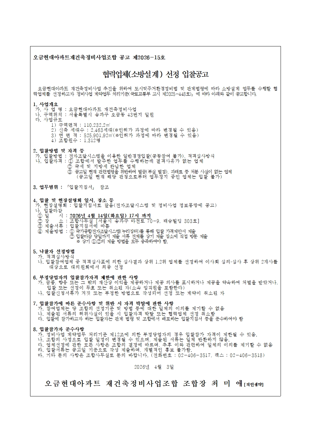 추진위원회/조합명 : 오금현대아파트 주택재건축정비사업구역
