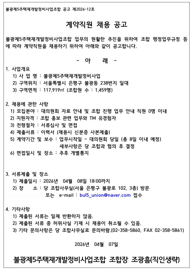 추진위원회/조합명 : 불광제5 주택재개발정비사업 조합