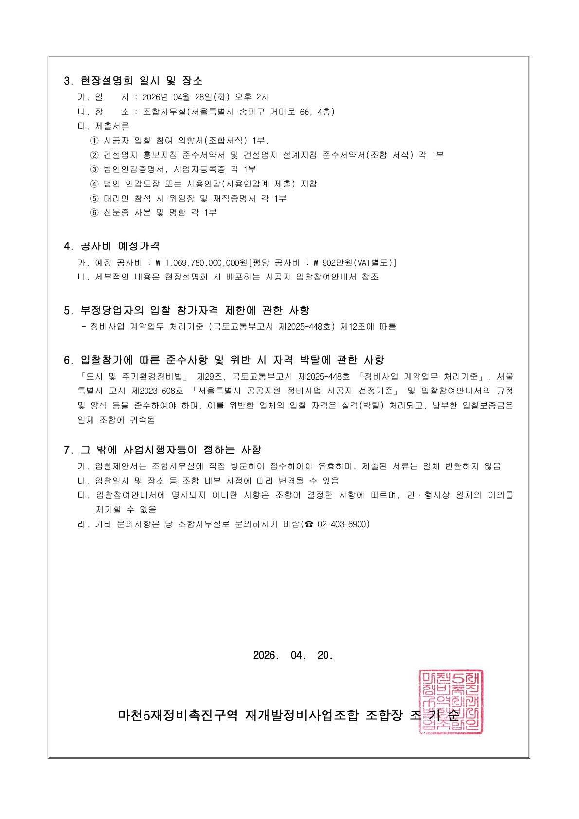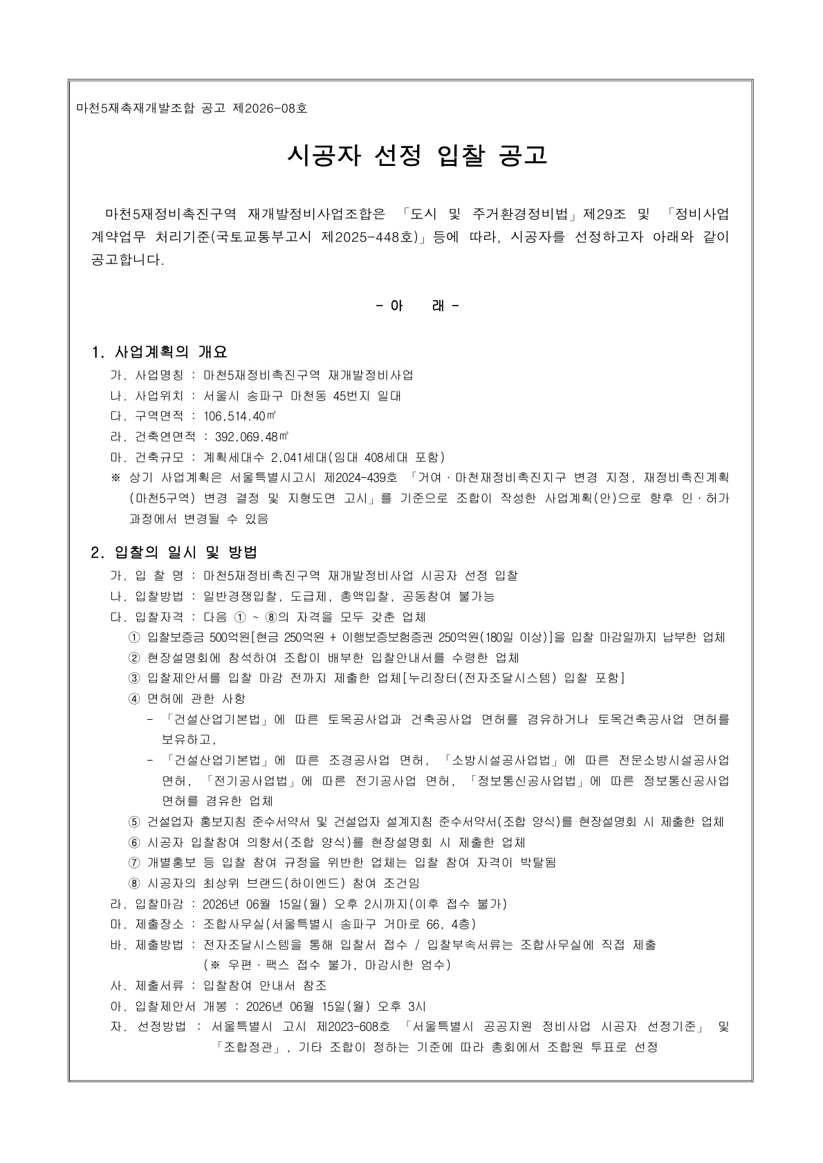 추진위원회/조합명 : 마천5재정비촉진구역 재개발정비사업조합