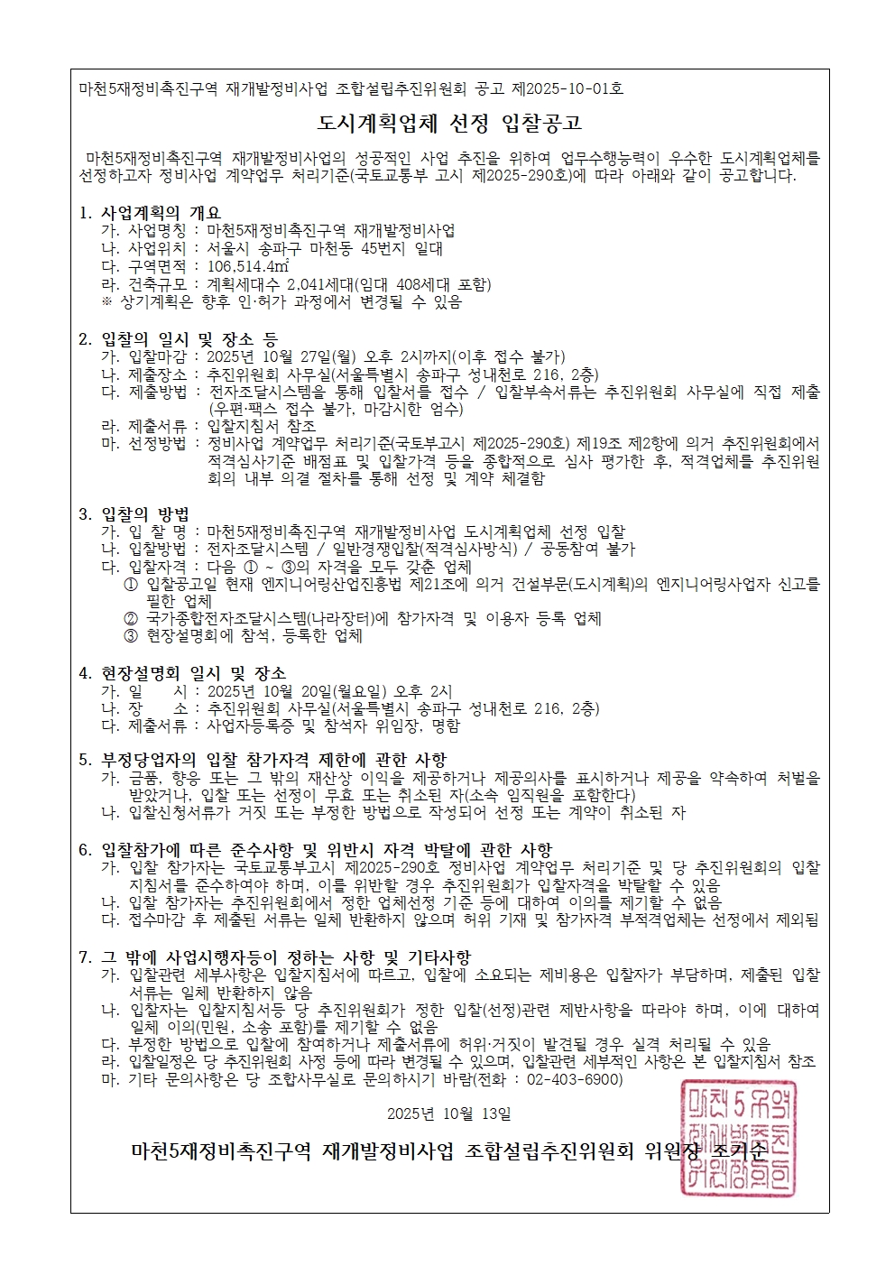 입찰마감일시 : 2025-10-27 (월) 오후 2시까지(이후 접수 불가)