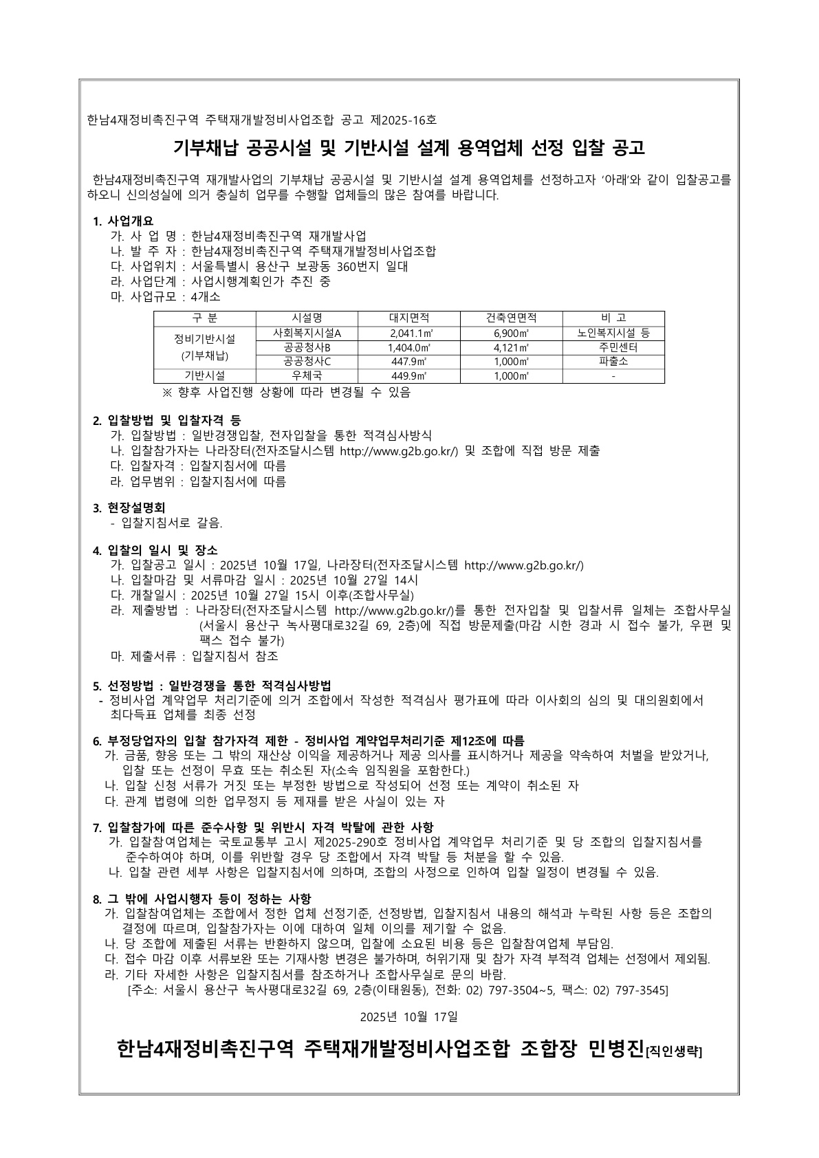 입찰명 : 기부채납 공공시설 및 기반시설 설계 용역업체 선정 입찰 공고