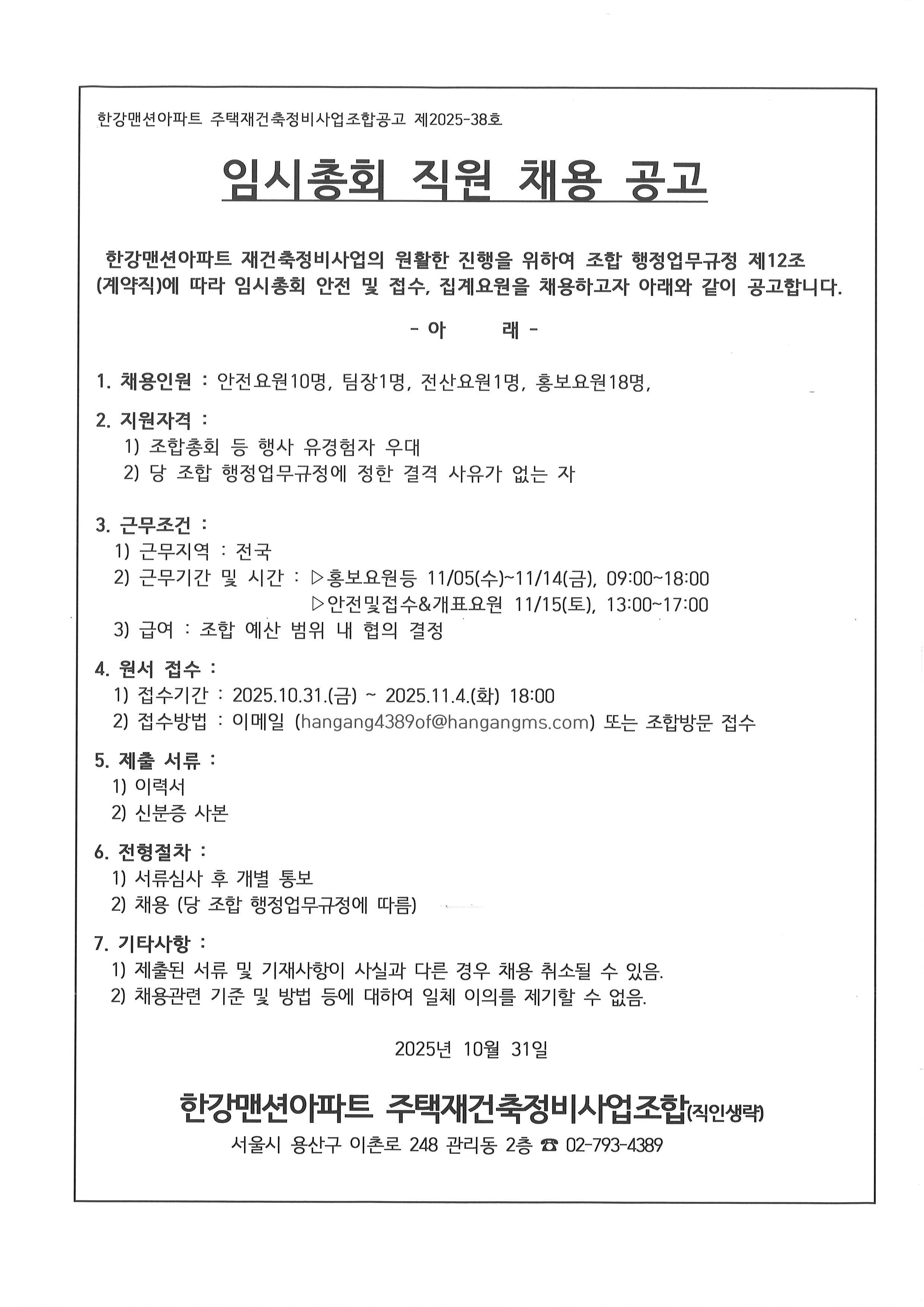 추진위원회/조합명 : 한강맨션아파트 주택재건축 조합