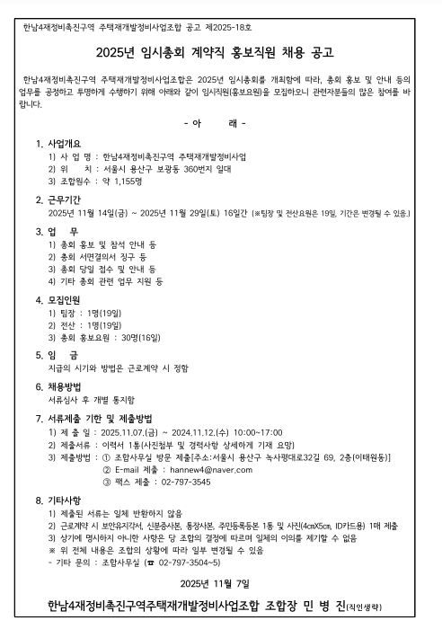 입찰명 : 2025년 임시총회 계약직 홍보직원 채용 공고