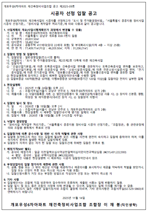 시공자 선정 입찰 공고