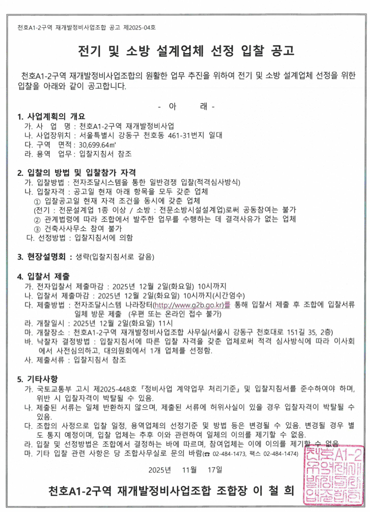 추진위원회/조합명 : 천호동 461-31번지 일대 재개발정비사업(천호 A1-2)