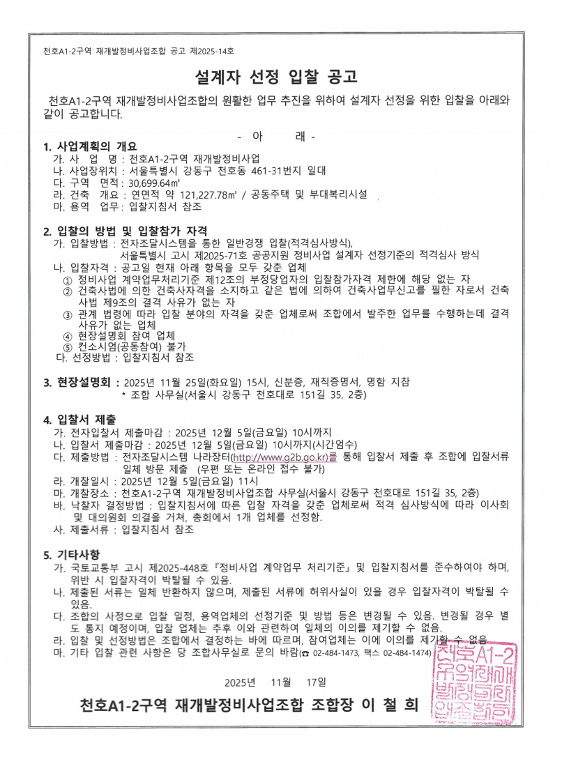 추진위원회/조합명 : 천호동 461-31번지 일대 재개발정비사업(천호 A1-2)