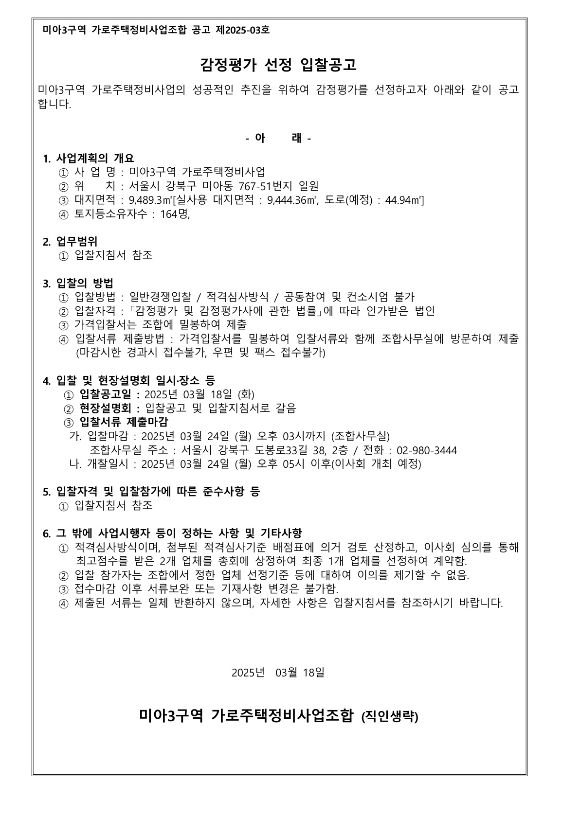 추진위원회/조합명 : 미아3구역 가로주택정비사업조합