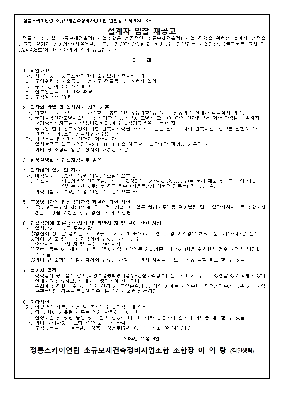 입찰공고 제2024-3호 설계자 입찰 재공고