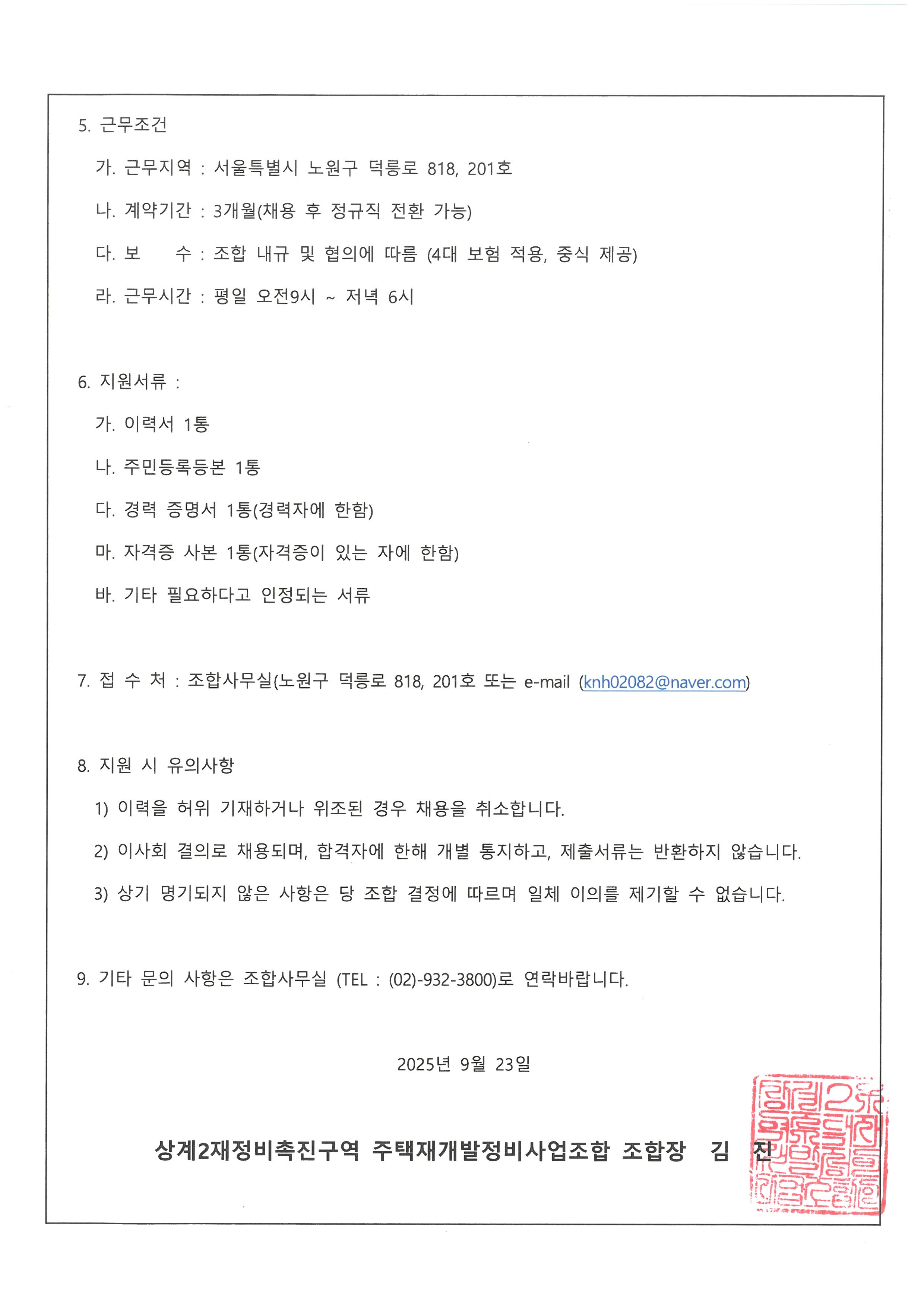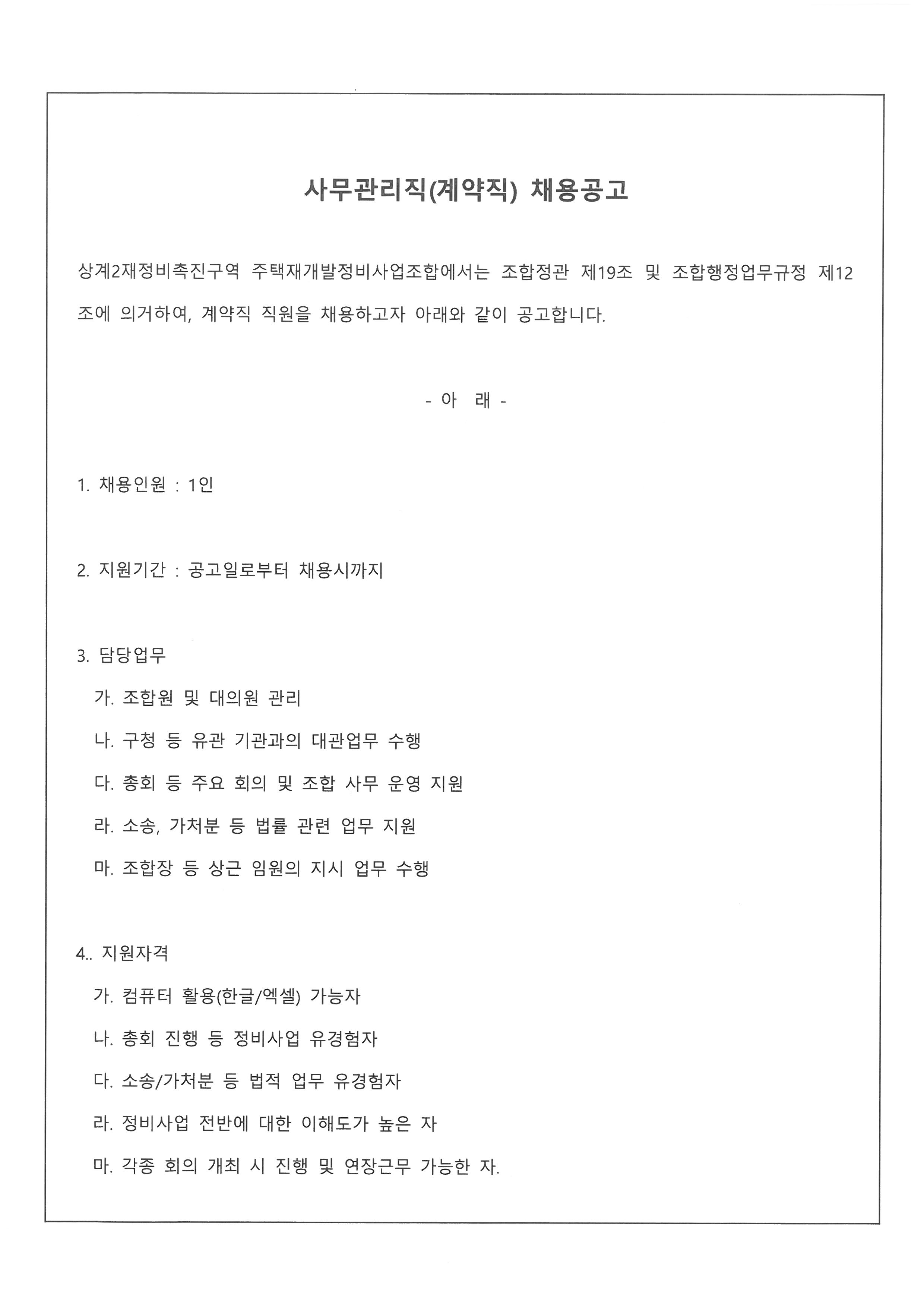 추진위원회/조합명 : 상계2재정비촉진구역 주택재개발정비사업 조합