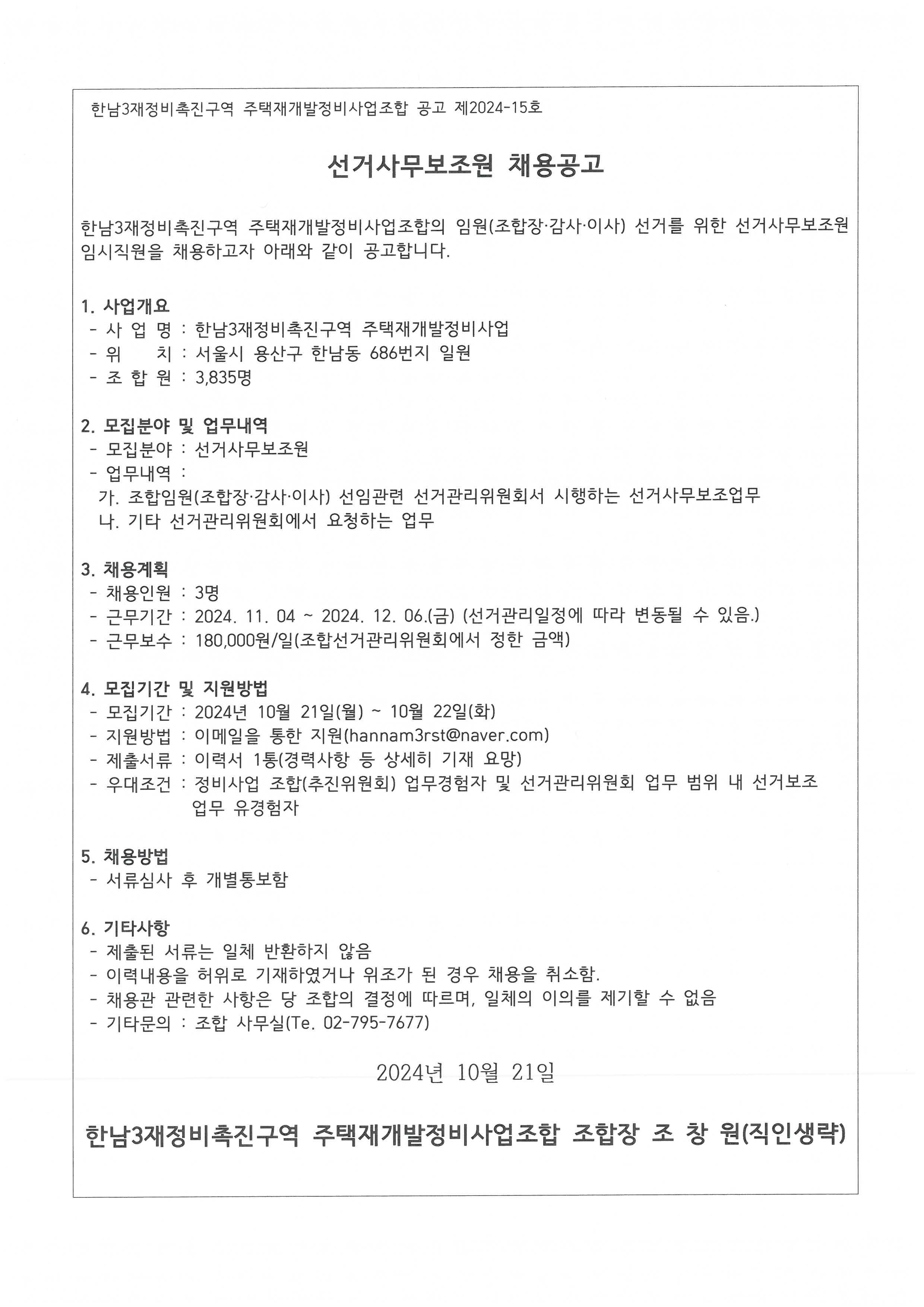 추진위원회/조합명 : 한남 제3재정비촉진구역 주택재개발정비사업 조합