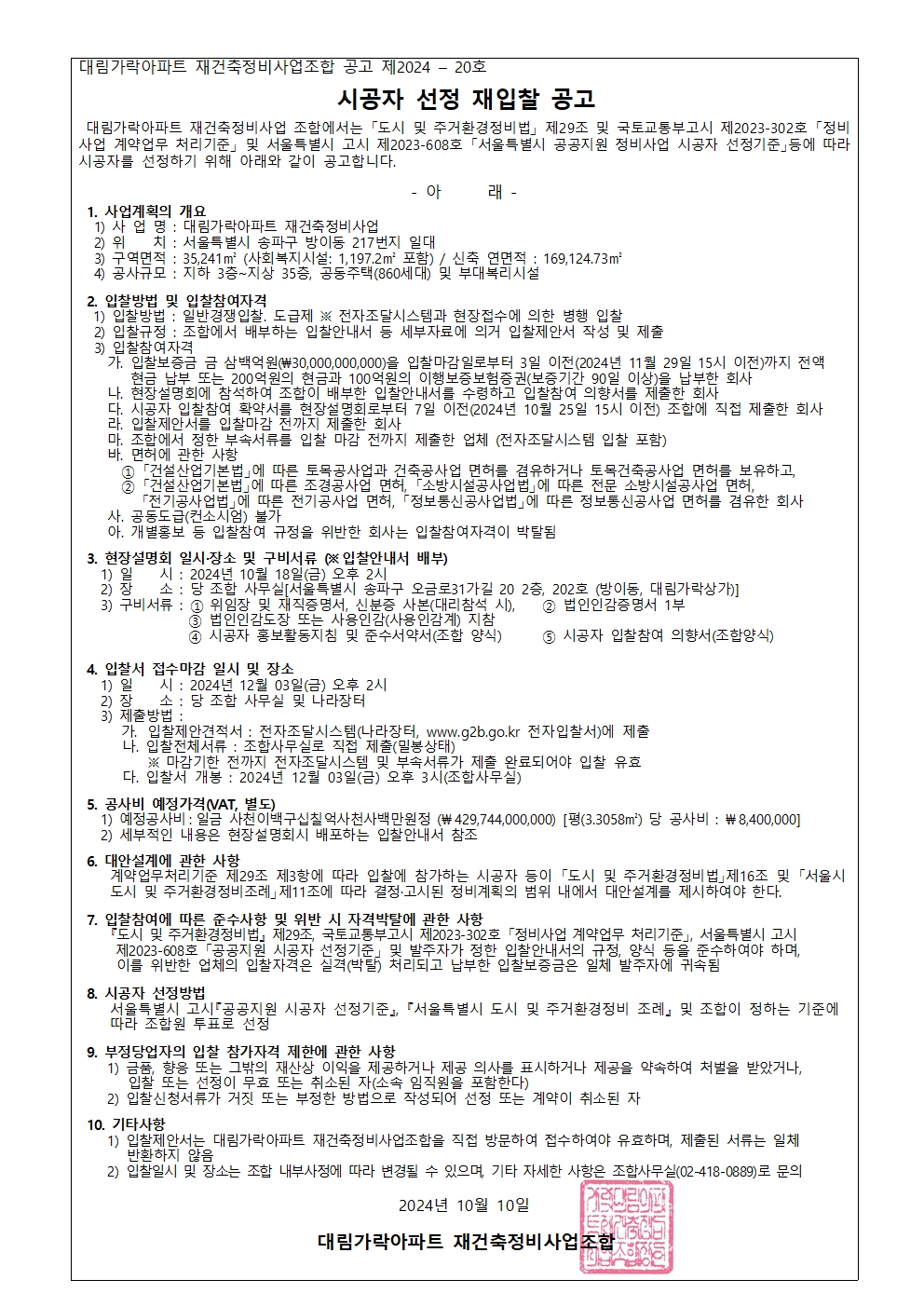 추진위원회/조합명 : 대림가락아파트 재건축정비사업조합