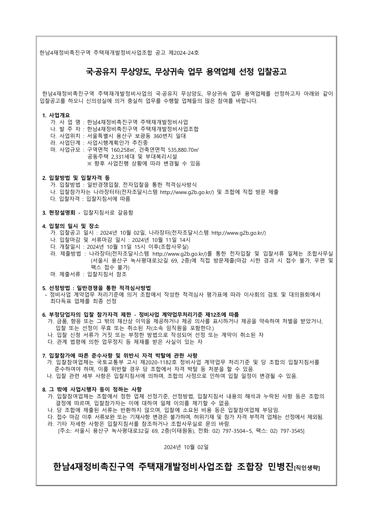 추진위원회/조합명 : 한남4재정비촉진구역 주택재개발정비사업 조합