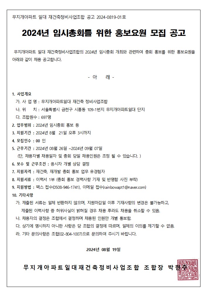 2024년 임시총회를 위한 홍보요원 모집 공고