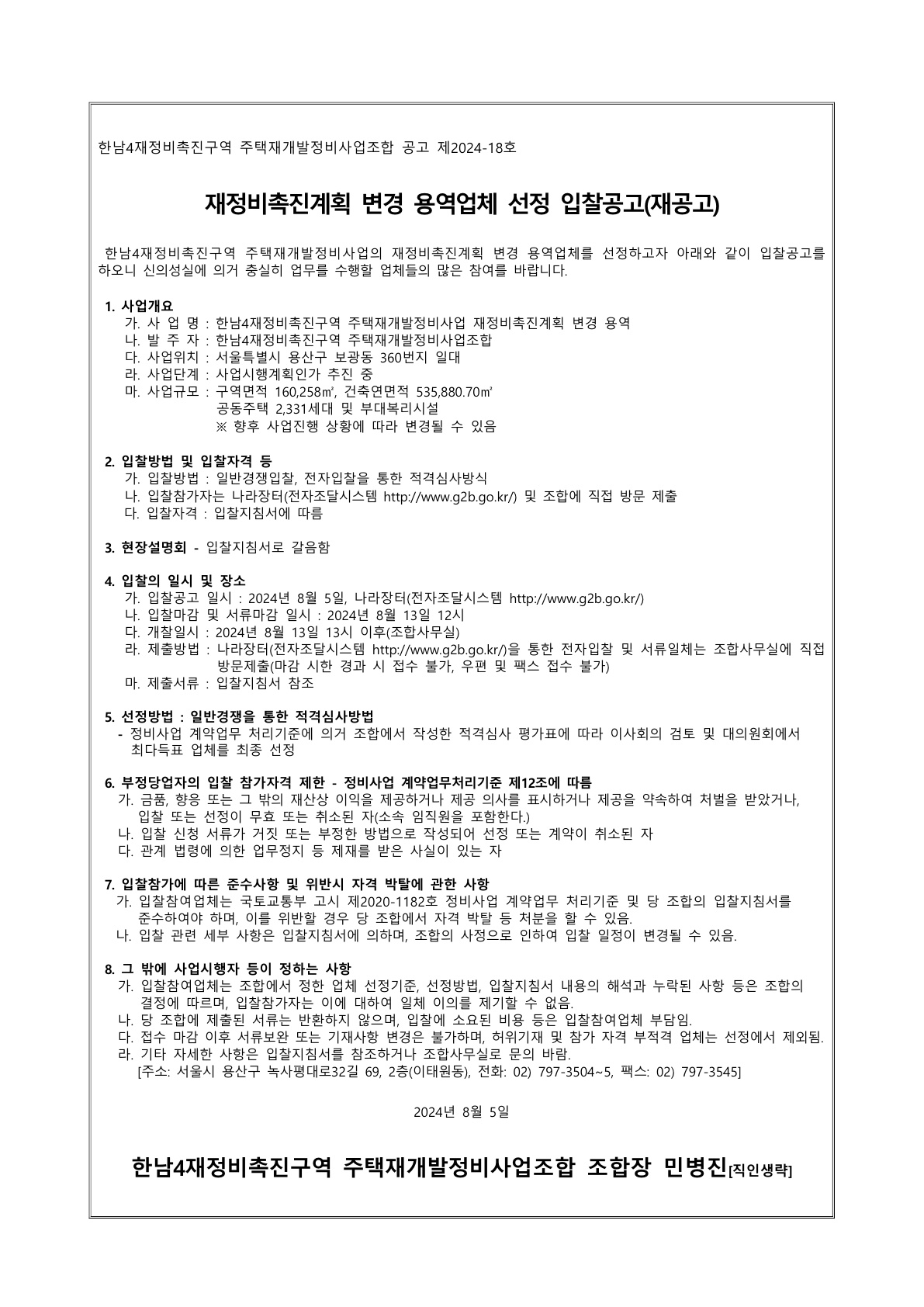 추진위원회/조합명 : 한남4재정비촉진구역 주택재개발정비사업 조합