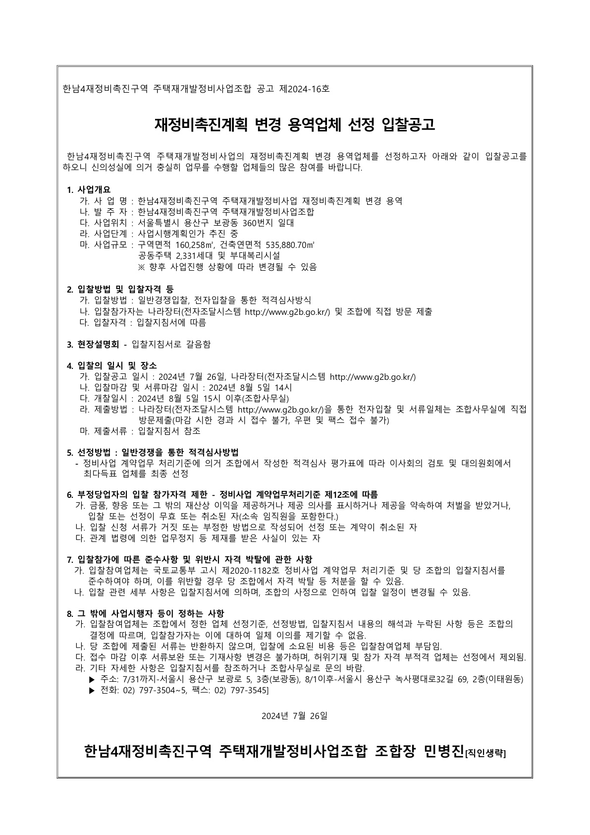 입찰명 : 재정비촉진계획 변경 용역업체 선정 입찰공고