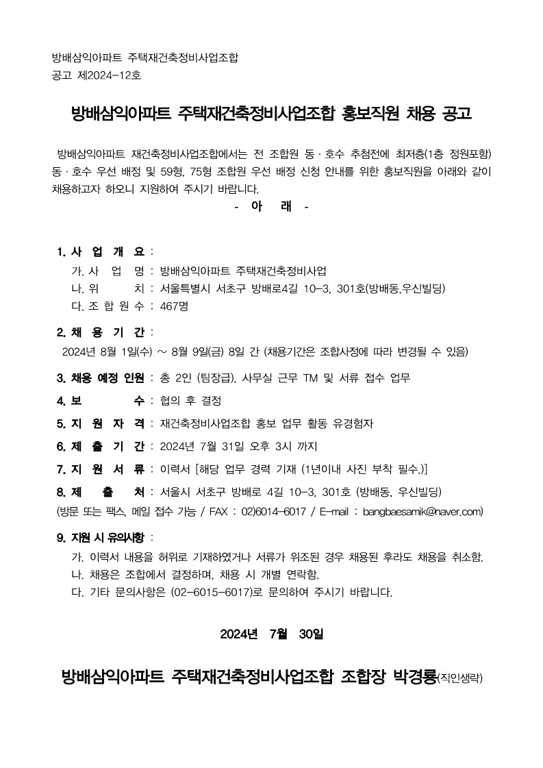 추진위원회/조합명 : 방배삼익아파트 주택재건축정비사업조합