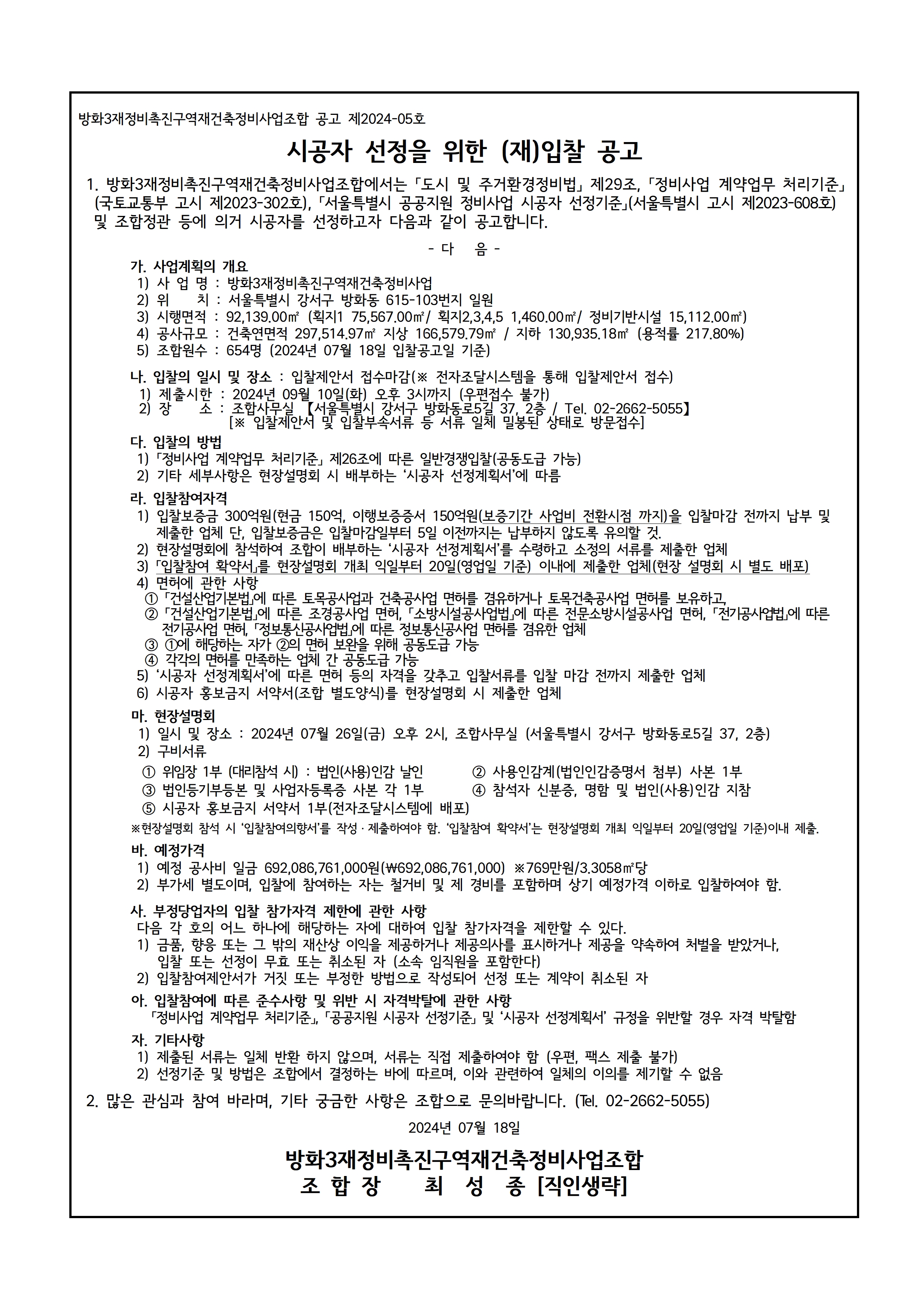 입찰명 : 시공자 선정을 위한 (재)입찰 공고