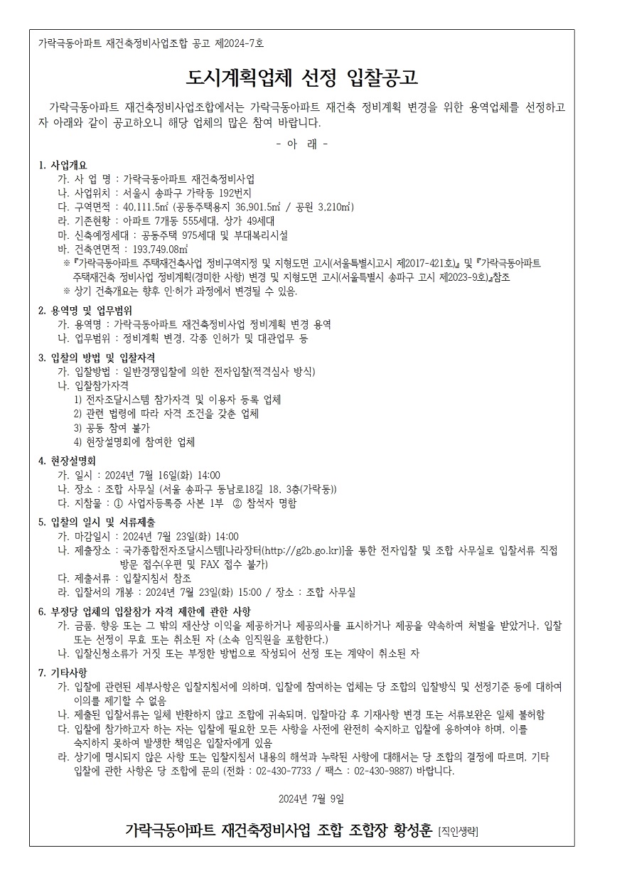 추진위원회/조합명 : 가락극동아파트 재건축사업 조합
