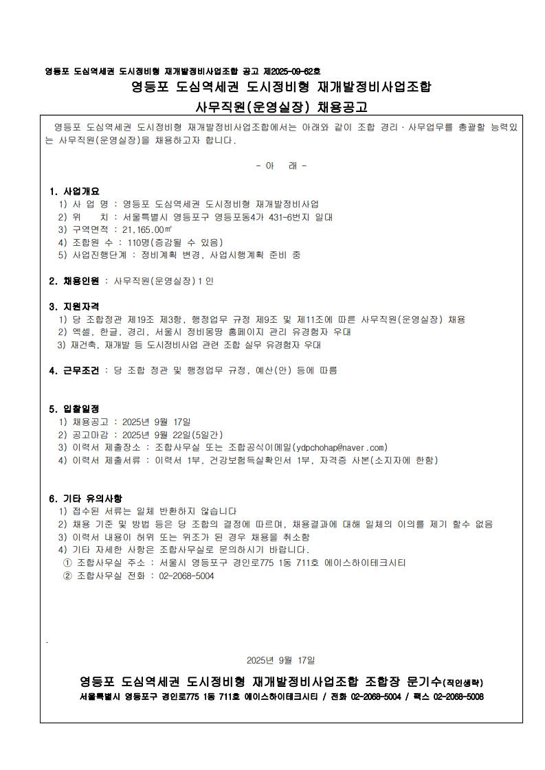 추진위원회/조합명 : 영등포 도심 역세권 도시정비형 재개발사업