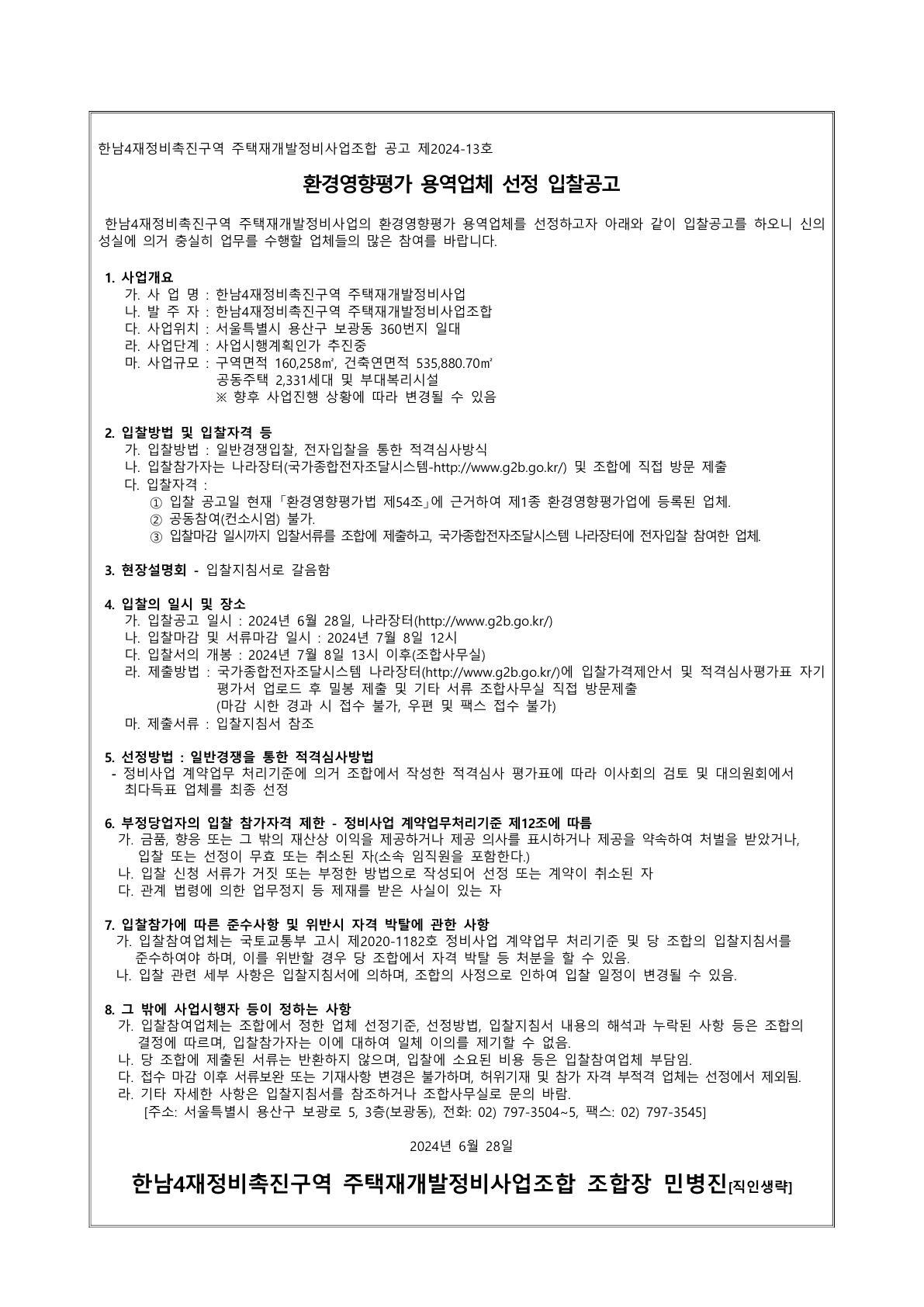 입찰명 : 환경영향평가 용역업체 선정 입찰공고