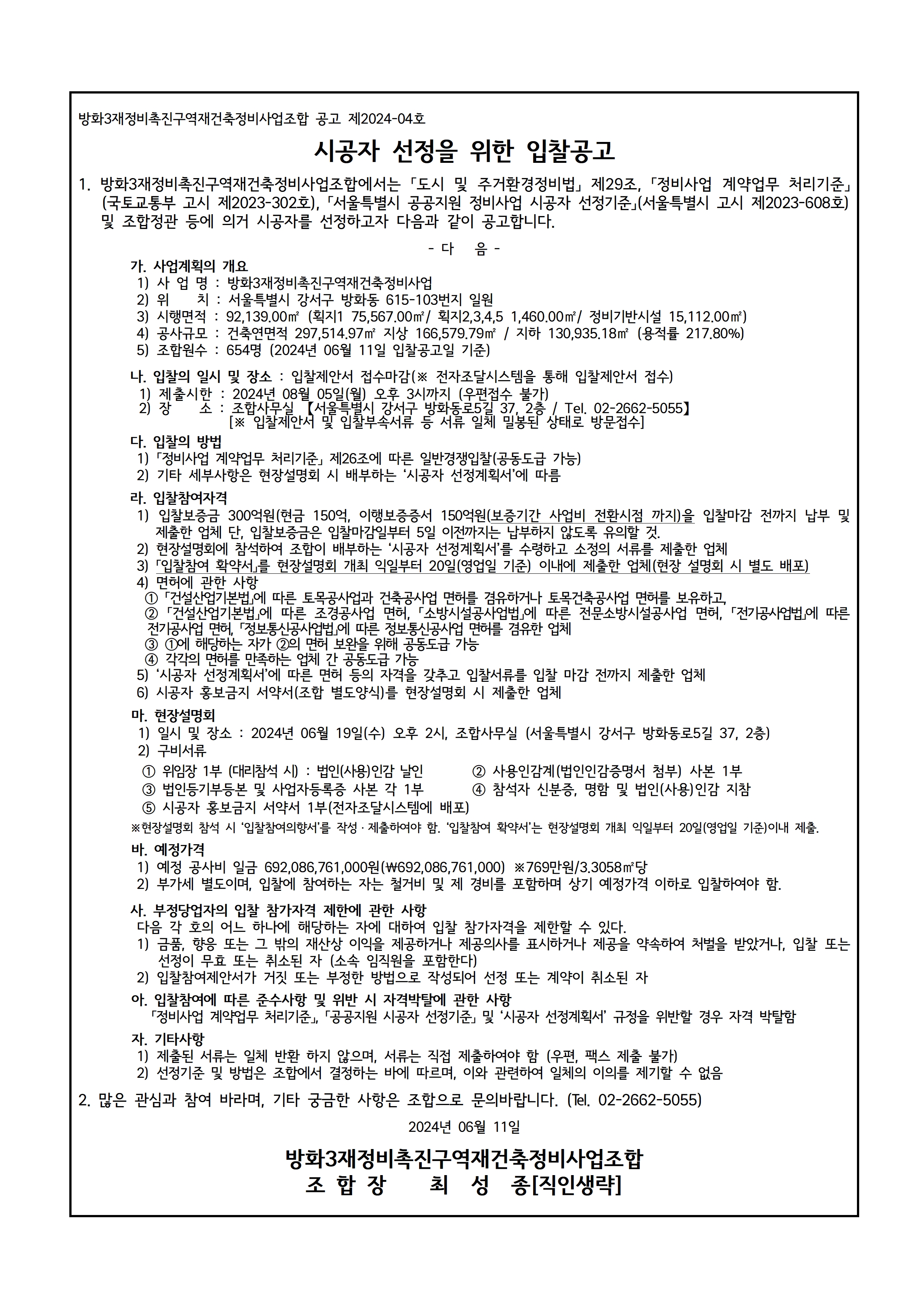 입찰명 : 시공자 선정을 위한 입찰 공고