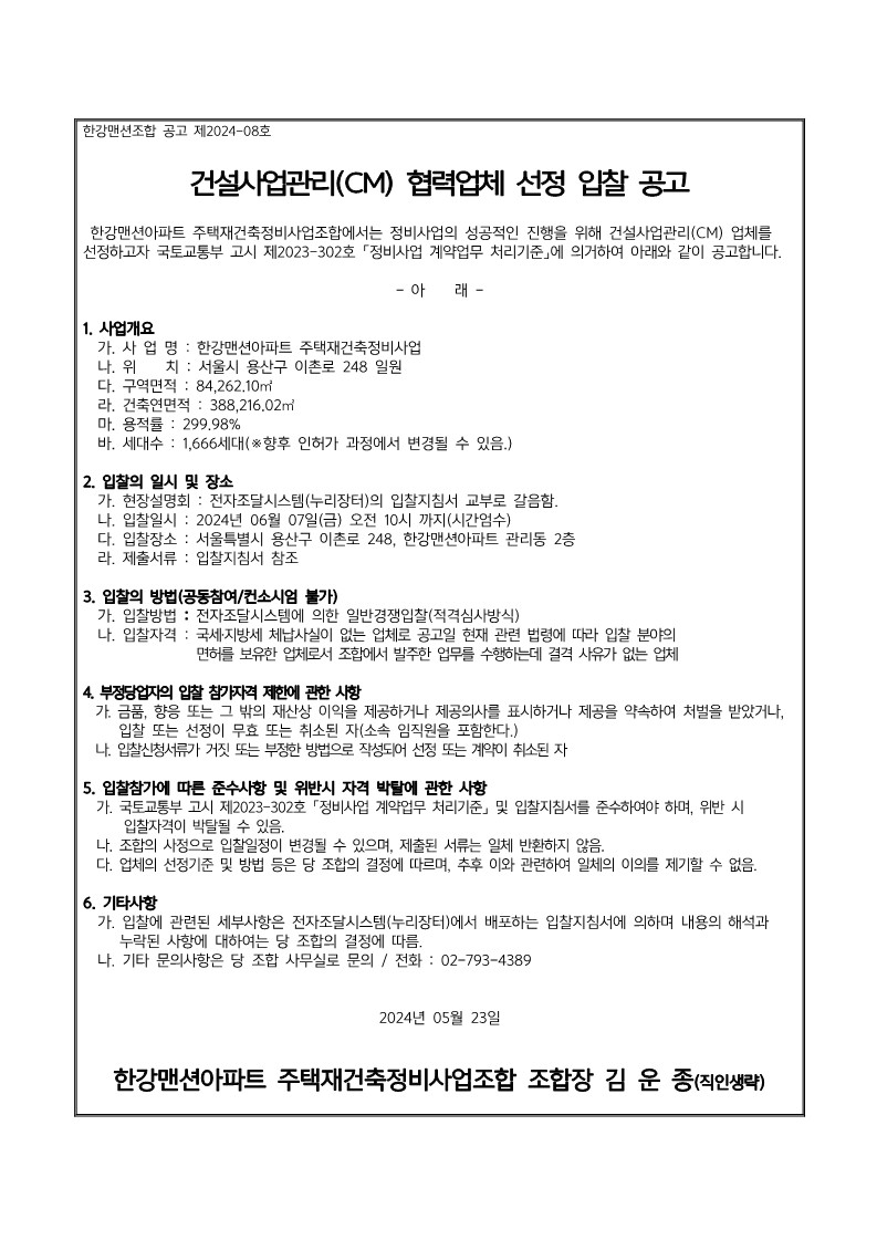 입찰명 : 건설사업관리(CM)협력업체 선정 입찰공고