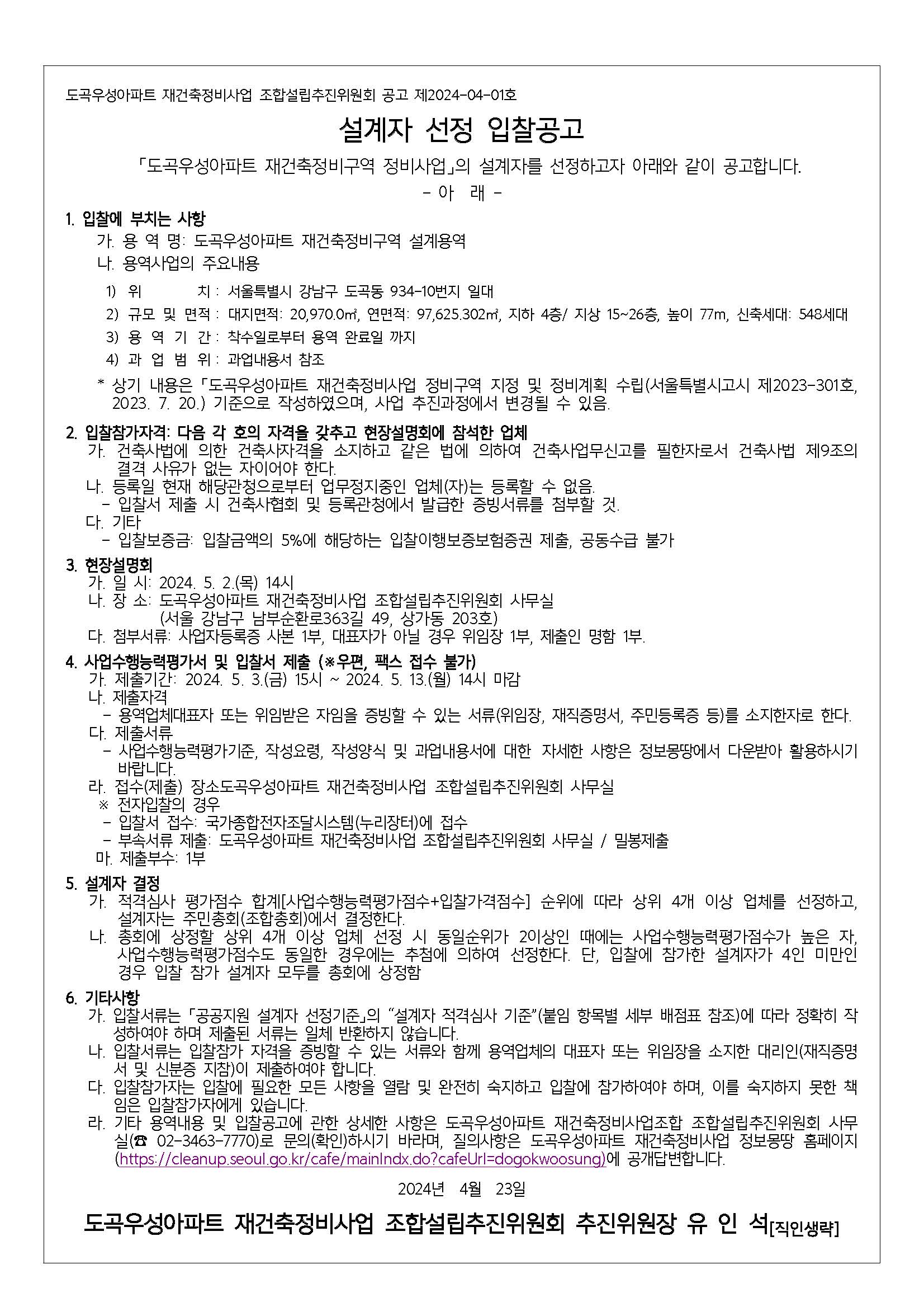 추진위원회/조합명 : 도곡우성아파트 재건축정비사업 조합