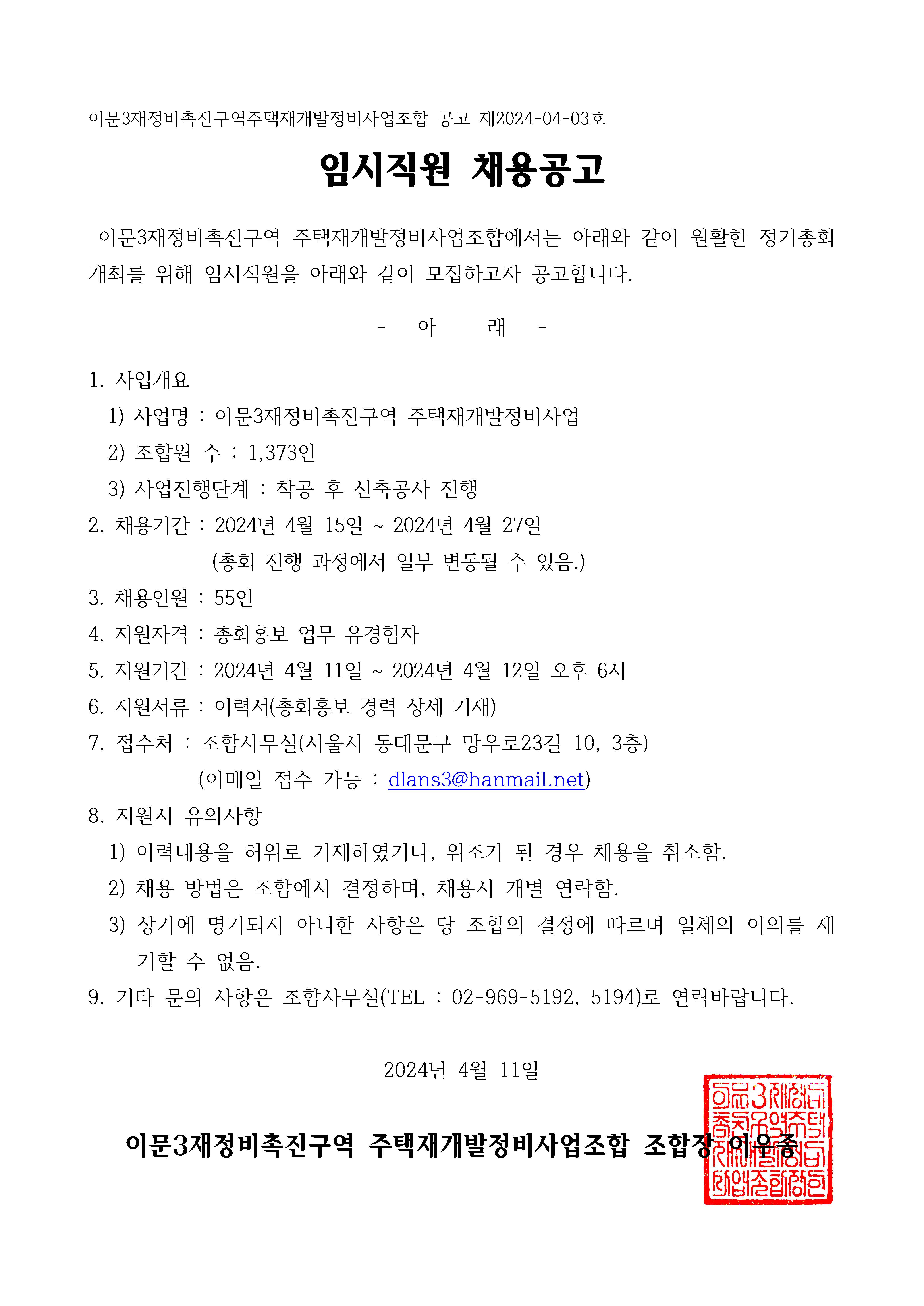 추진위원회/조합명 : 이문3재정비촉진구역 주택재개발정비사업조합