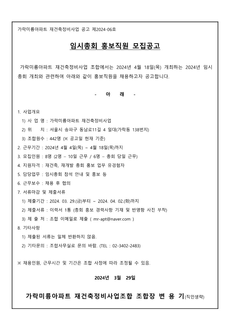 추진위원회/조합명 : 가락미륭아파트 재건축정비사업조합
