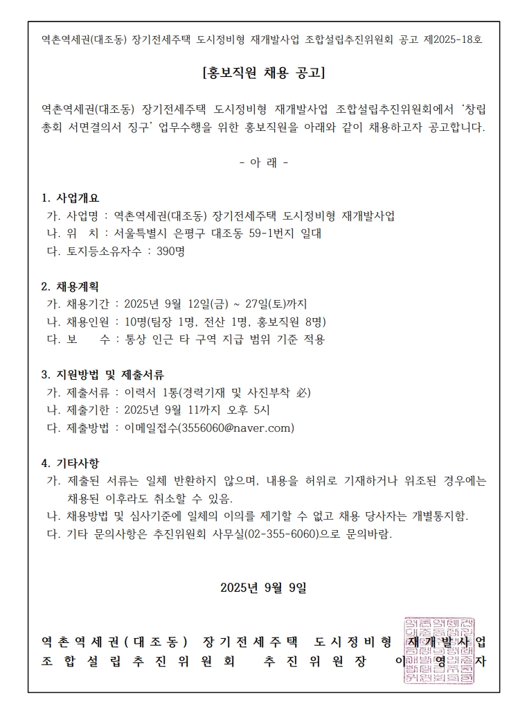 추진위원회/조합명 : 역촌역세권(대조동) 장기전세주택 도시정비형재개발사업