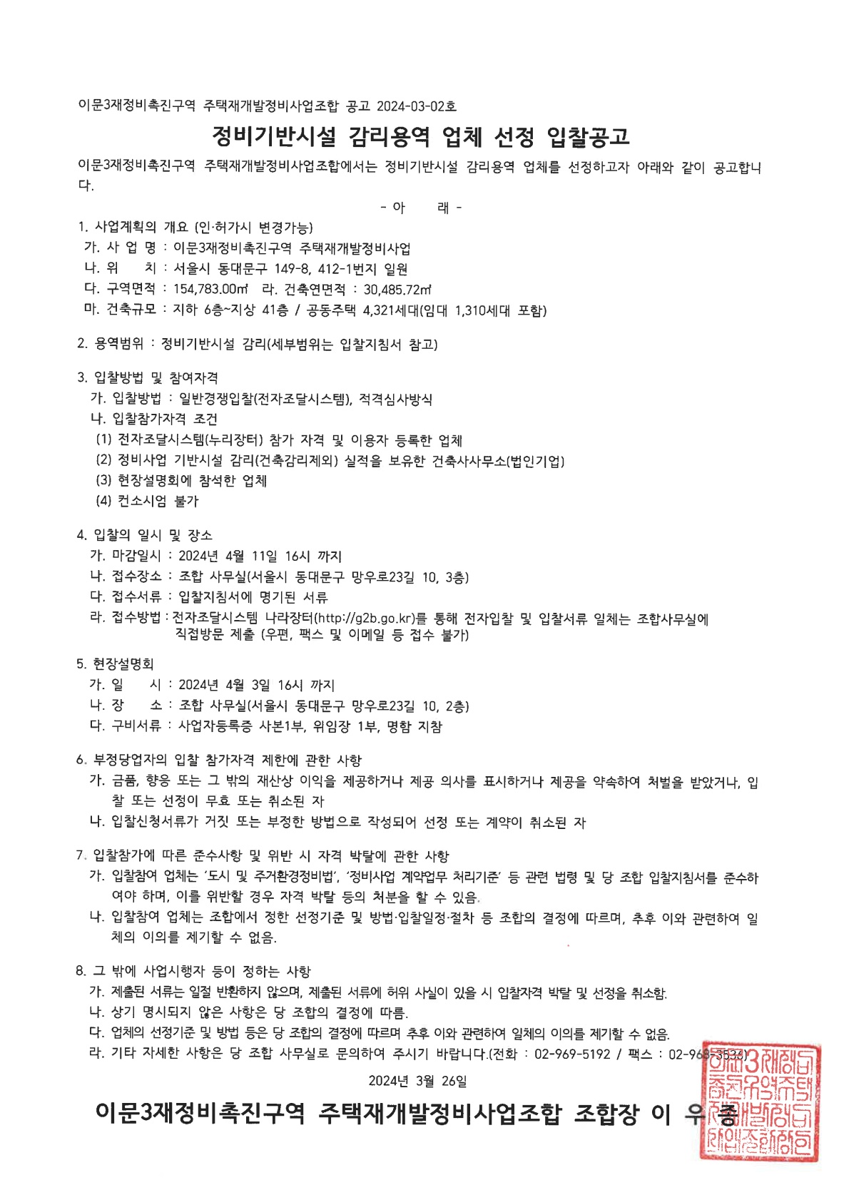 추진위원회/조합명 : 이문3재정비촉진구역 주택재개발정비사업조합
